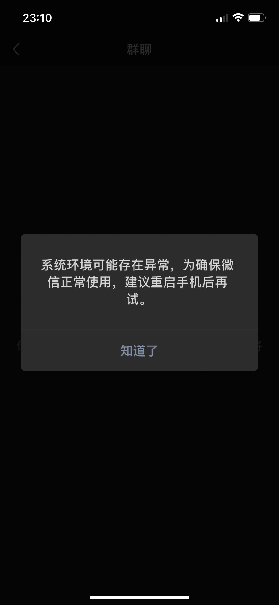 iPhone12更新14.2.1体统后微信多次提示:系统环境异常,建议重启