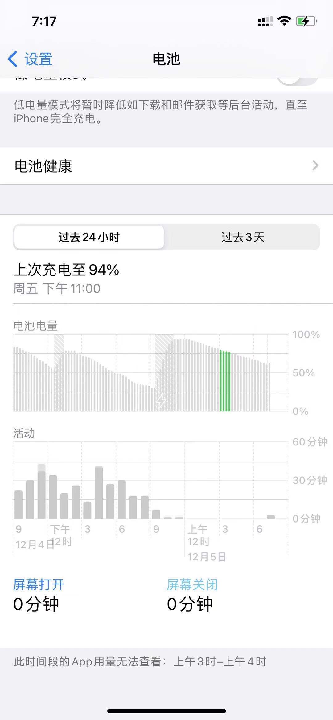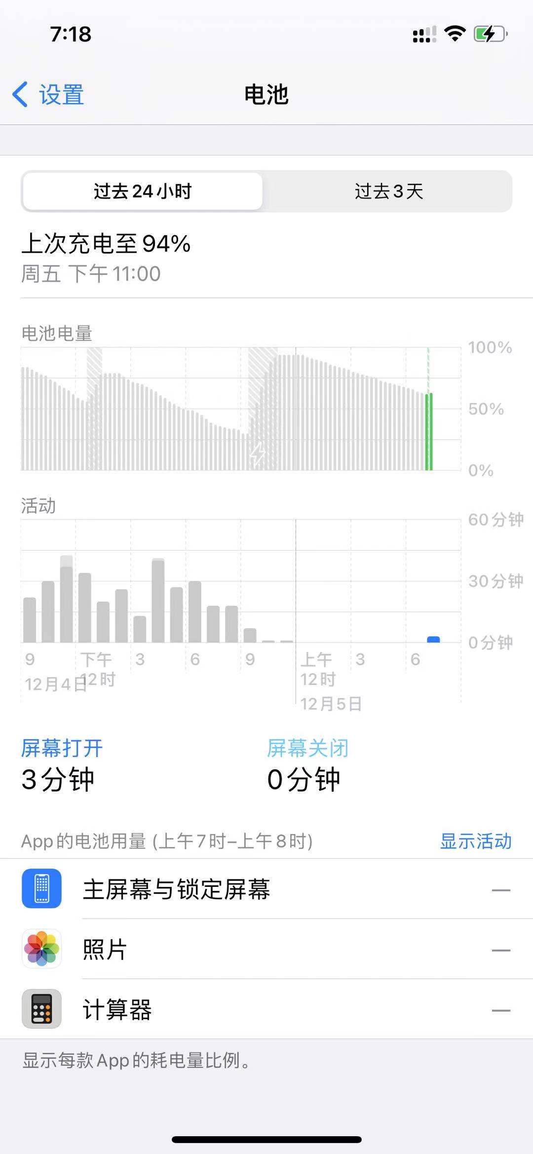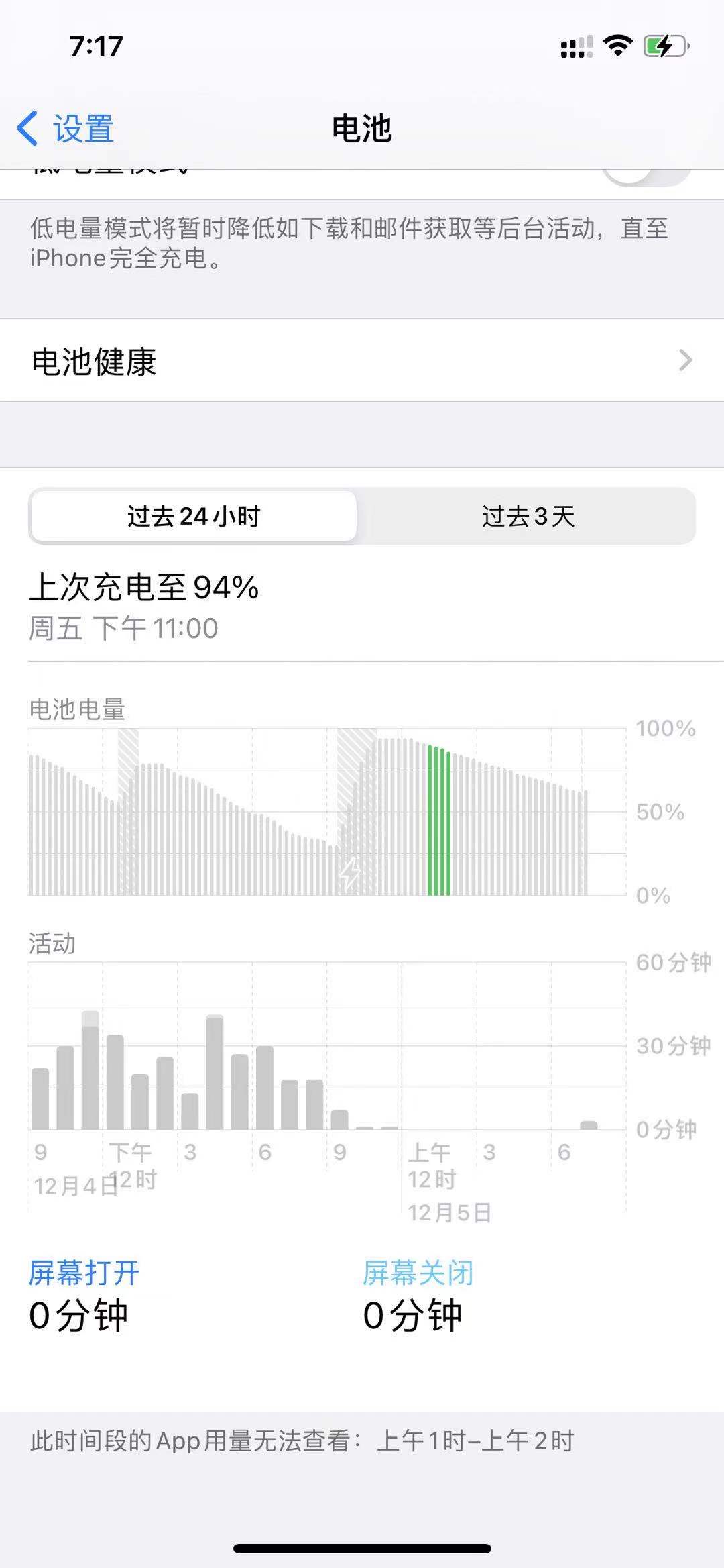 苹果12刚买一个月,每天晚上待机什么没做睡觉掉电20到35之间!!!!!关闭微信,关闭后台,抹除数据恢复出厂设置,电池健康度100,什么都尝试过,昨晚11点睡冲电到94,今天早上起床7点09直接到了62!!!!!我要退货!!!!!
