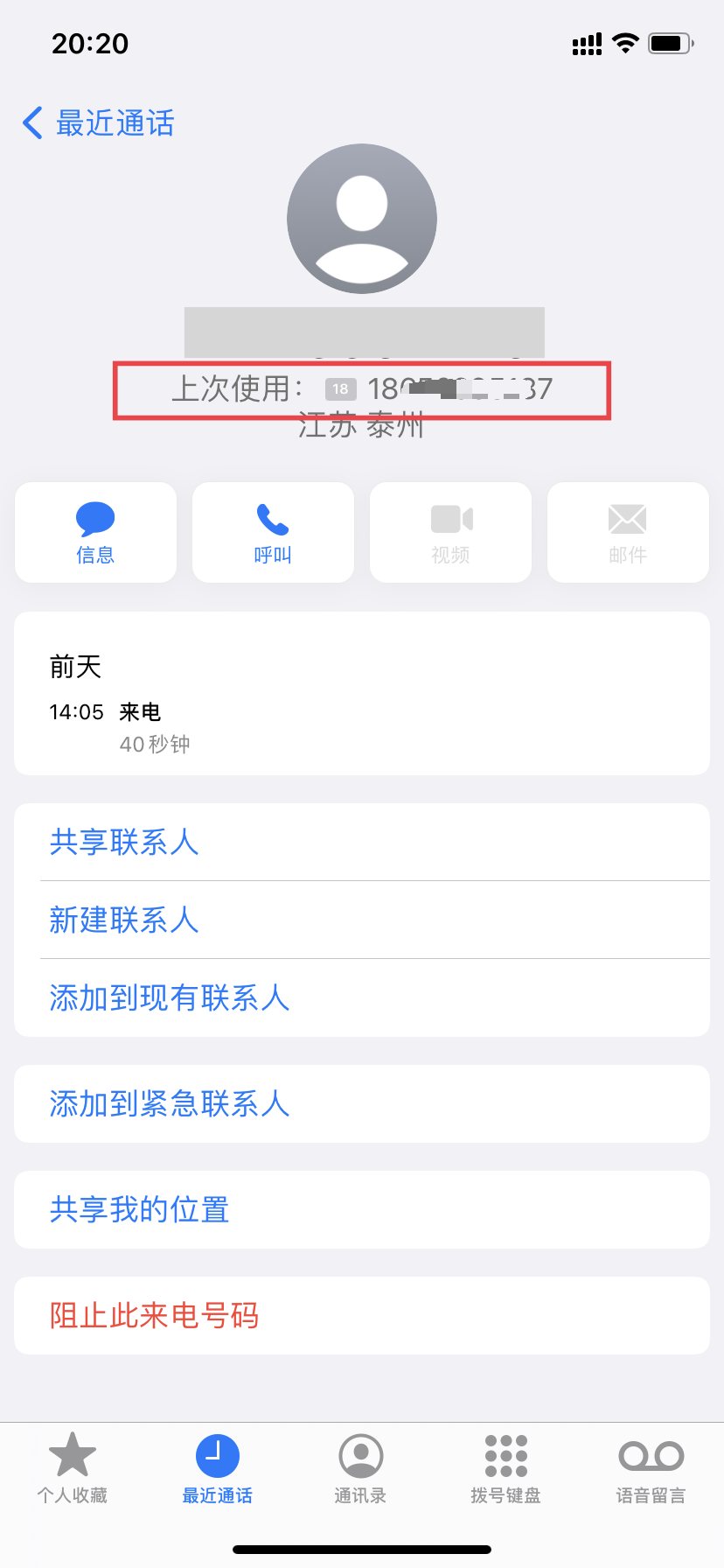 - iphone11 iOS14.2,在最近通话的来电号码进行回拨时,只能选择默认的上次使用号码,无法进行双卡选择,通讯录里的号码回拨必须进入号码详情界面对上次使用号码进行设置,而陌生号码则没办更改,建议加入最近通话里回拨的号码选择,在设置中的蜂窝网络下的默认语音号码只有在拨号界面起作用,其他地方都是使用的是上次使用号码,建议将默认语音号码作为最近通话和拨号的首选,后者将号码在拨号或回拨时进行选择,我的手机卡一个是当流量卡一个是当语音卡,有时有人会打到我流量卡上再在最近通话里回拨就一直使用的是流量卡的语音