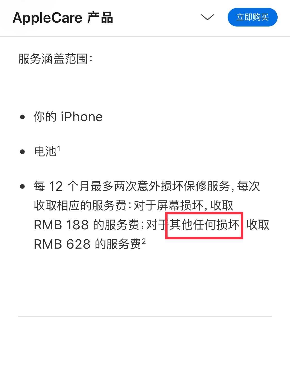 还有 AppleCare+ 意外损坏中除了屏幕损坏的其他损坏 不包括边框吗?如下图红框所示