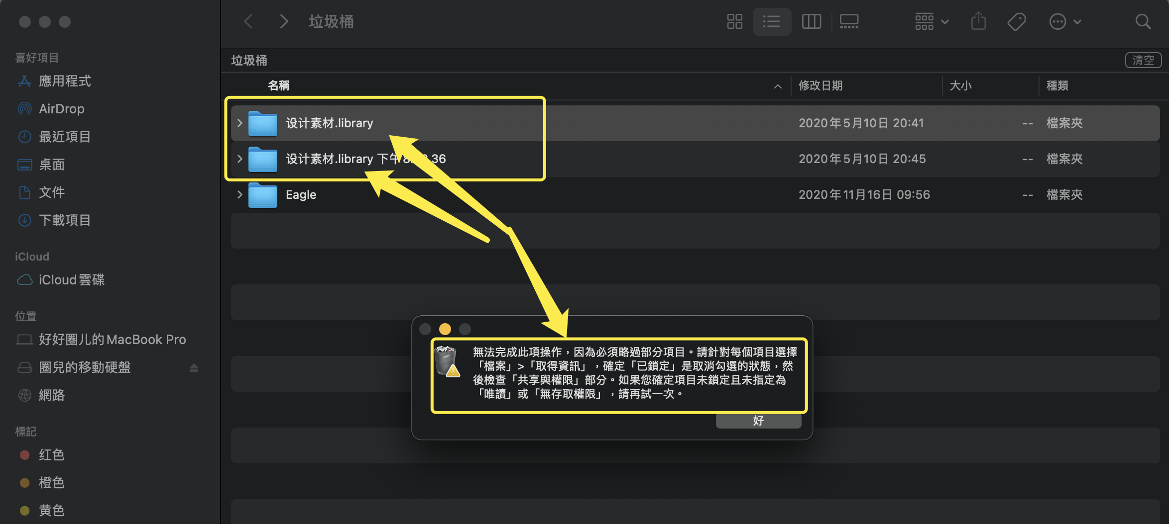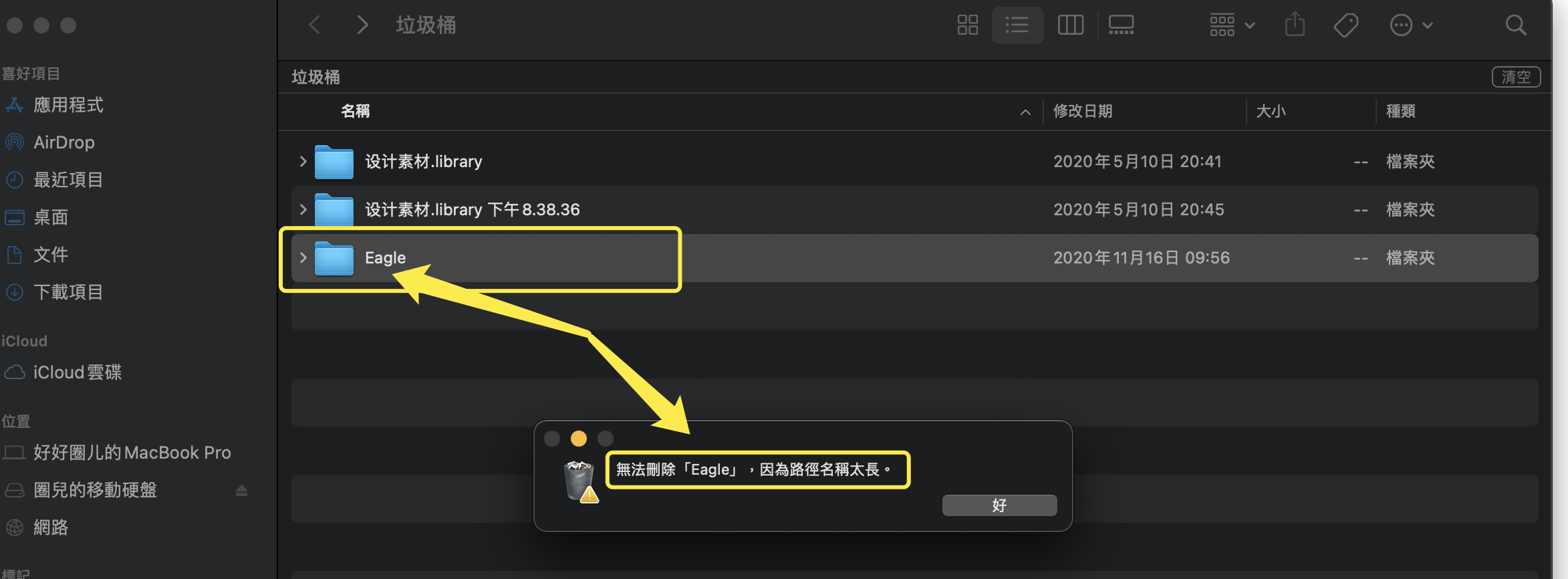 删除后再插入MacBook Pro垃圾桶内就没有垃圾了