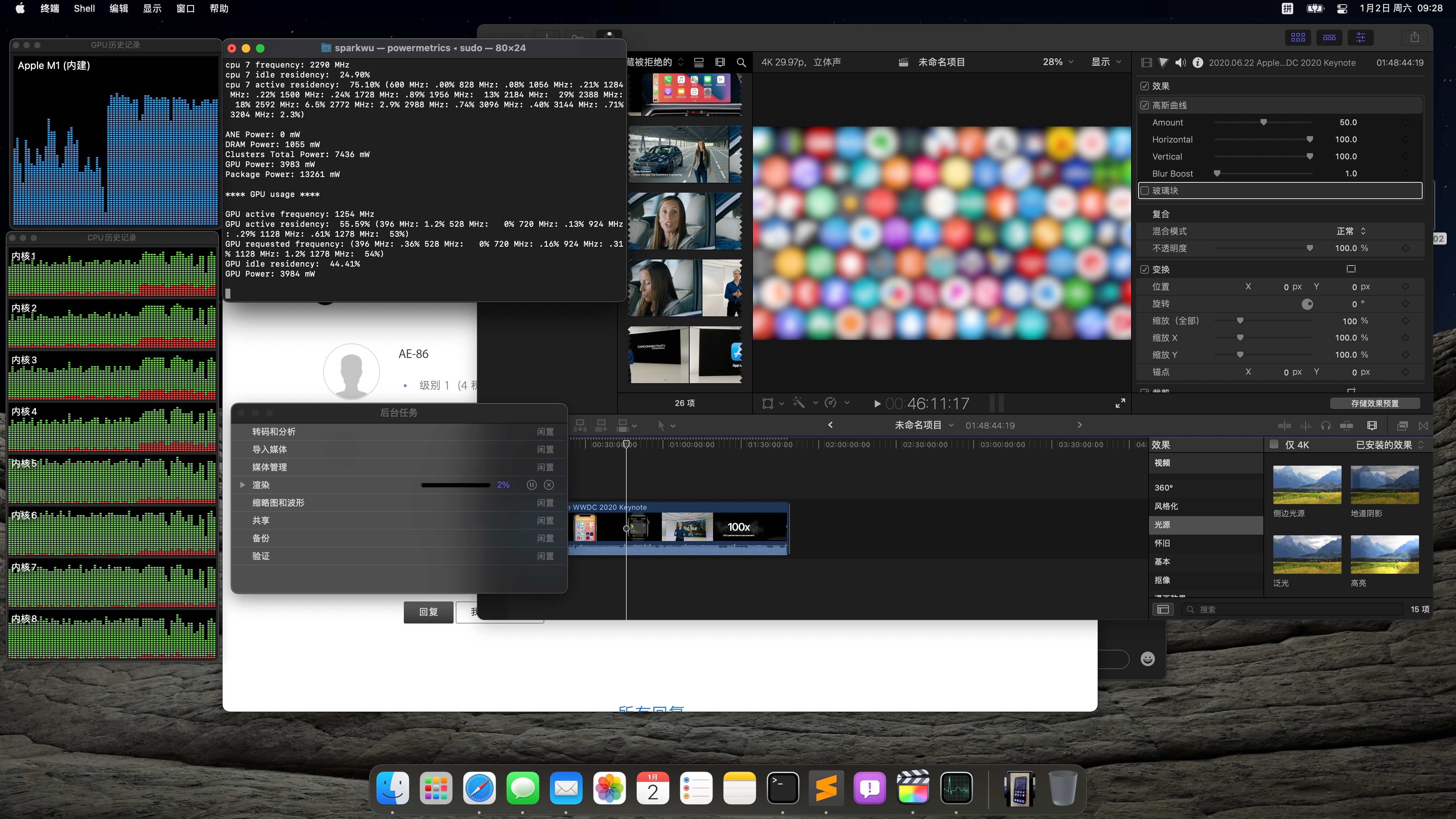 1.我想用mba剪一点视频(用final cut pro),所以我默认会把CPU跑满(我也不知道跑的满不)。
