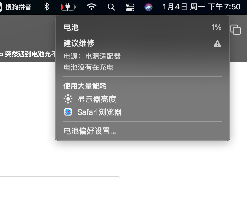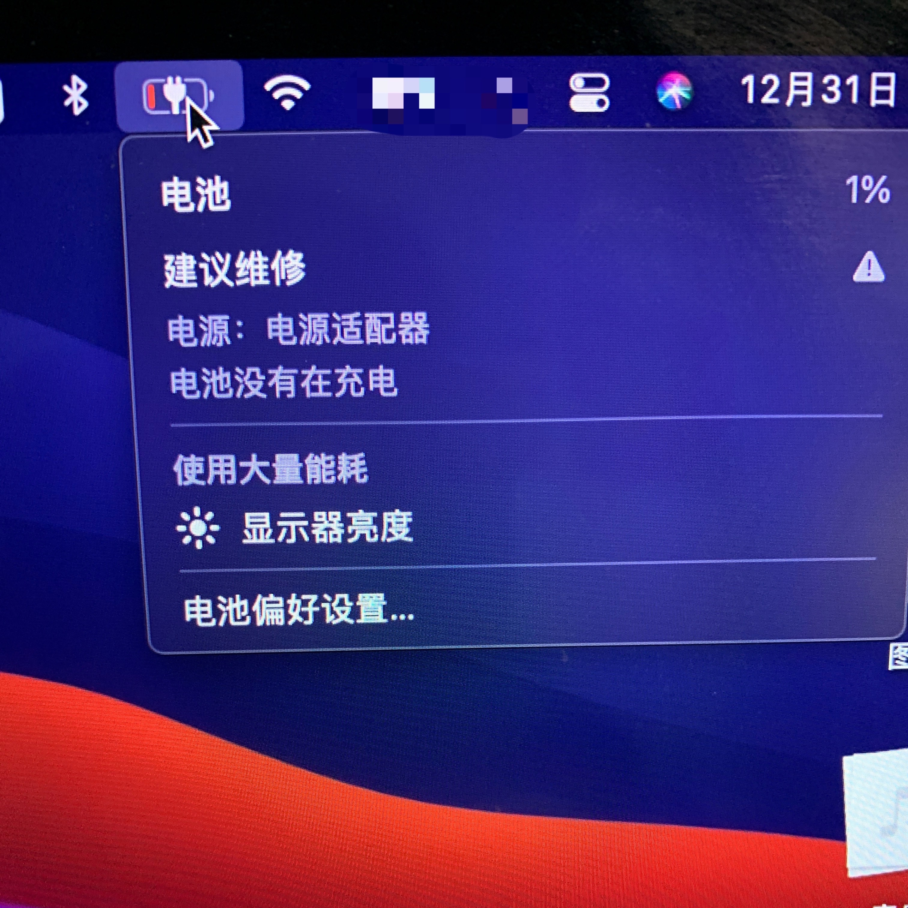 macbookpro 突然遇到电池充不进电,建议维修的情况