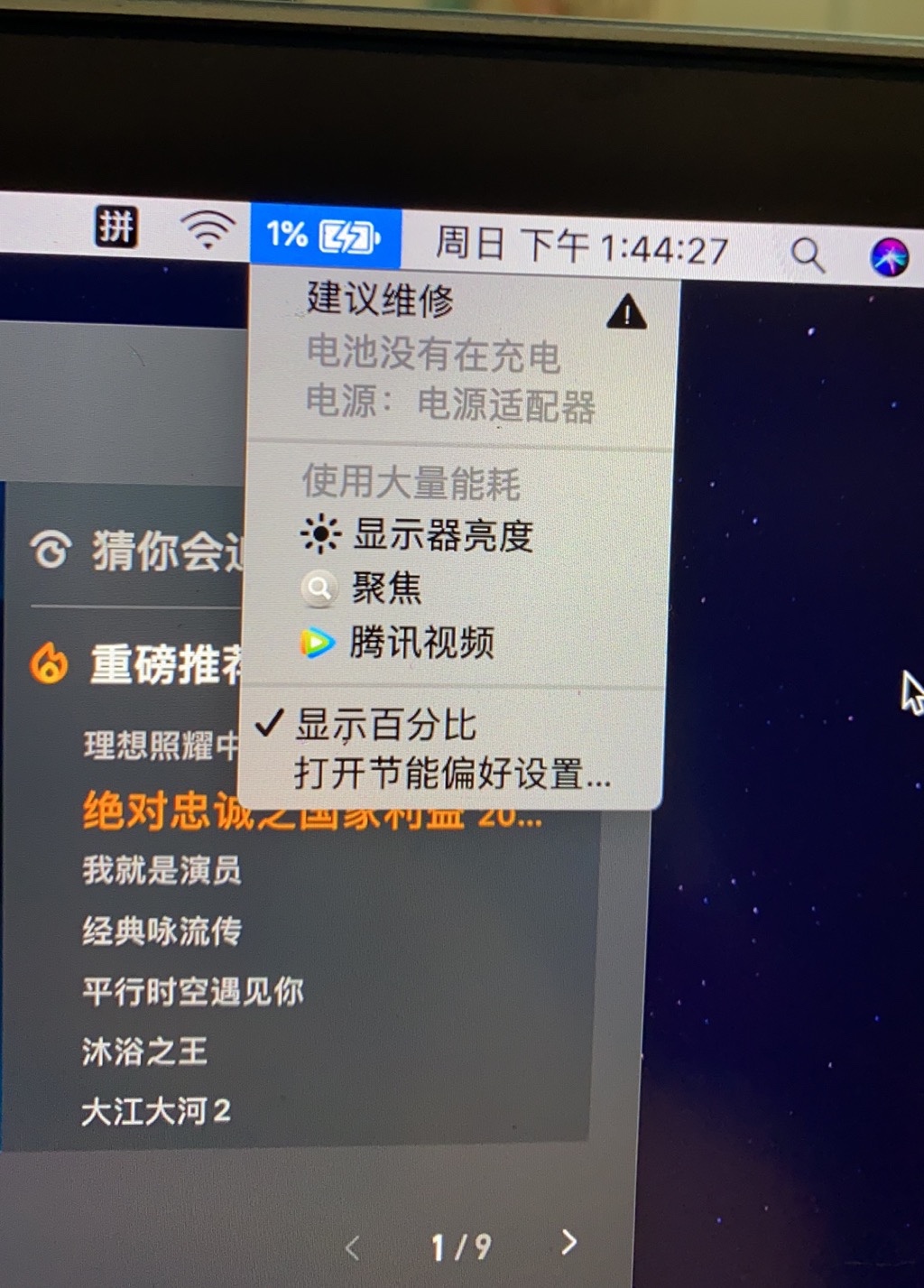 17年的mac book air 也遇到了同样的问题 就很突然 连接电源显示不在充电 且一直都是1% ,并且运行很卡,拔掉电源直接关机。