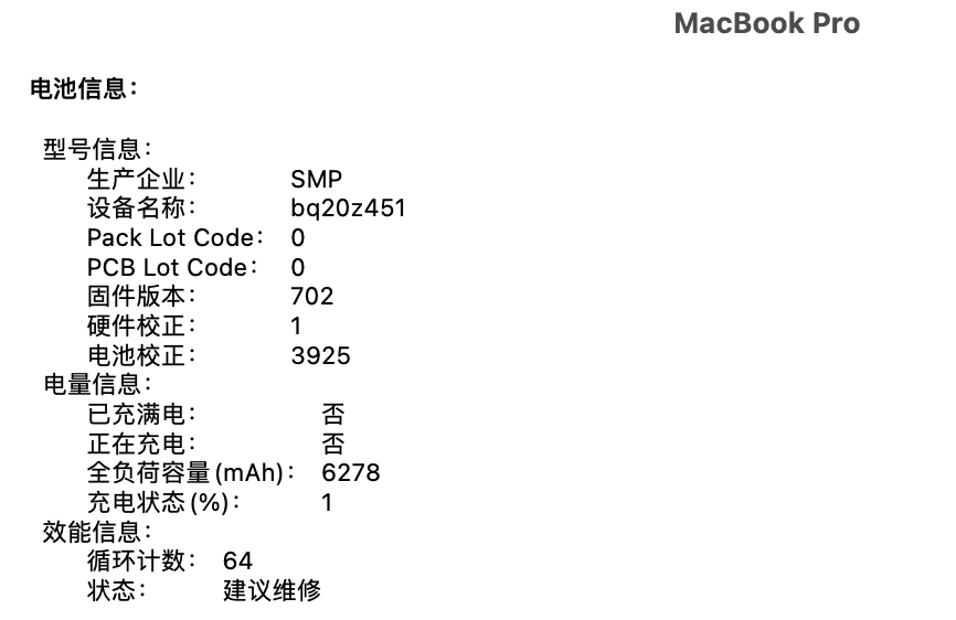 16年15寸MacBookpro(下方贴截图)系统11.1,本人电脑之前因为键盘出现问题,参加了键盘免费更换计划,1月4日晚突然发现电脑出现开不了机,电源充电时才能开机使用,一旦拔出电源电脑直接关机,电池也只显示1%电量,电池循环60+次