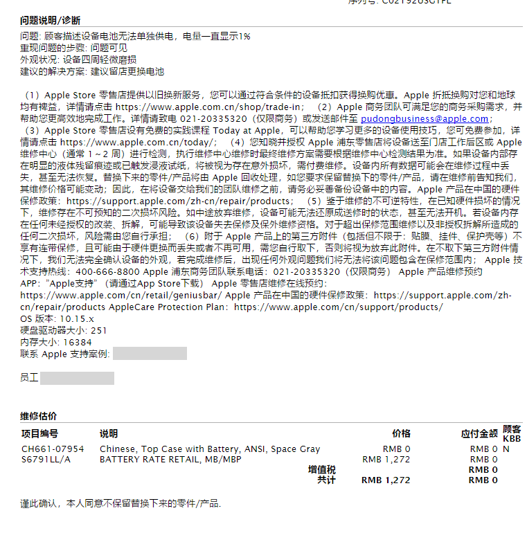 抽空去了趟上海浦东店,免费更换电池(更换电池的同时会把键盘和触摸板一起换掉)