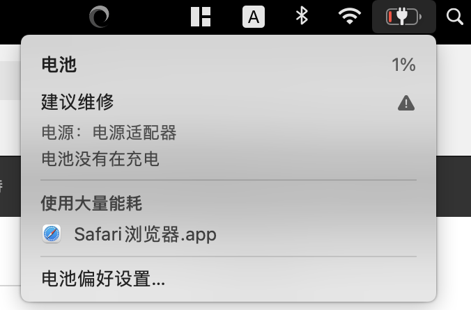 macbookpro 电量1%充不进电只能插着电源用,拔掉电源直接关机