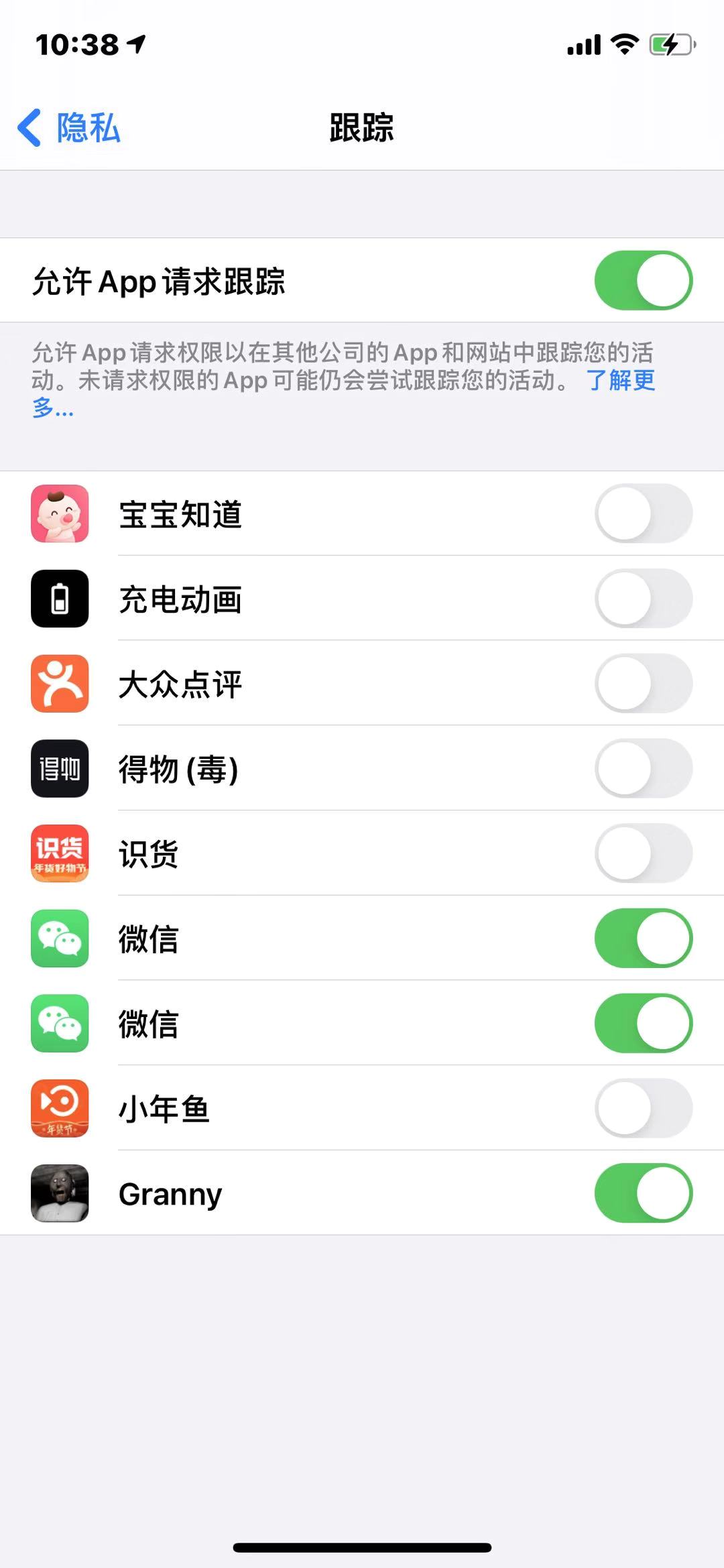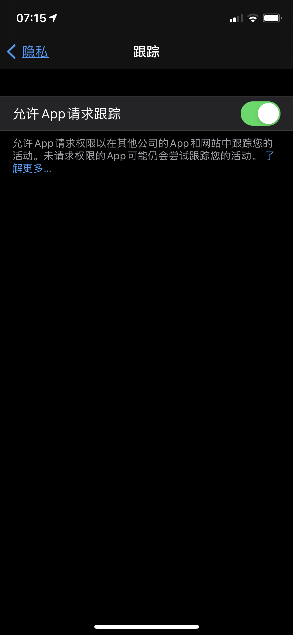 设置隐私中的跟踪打开后,底下为什么没有允许的app列表