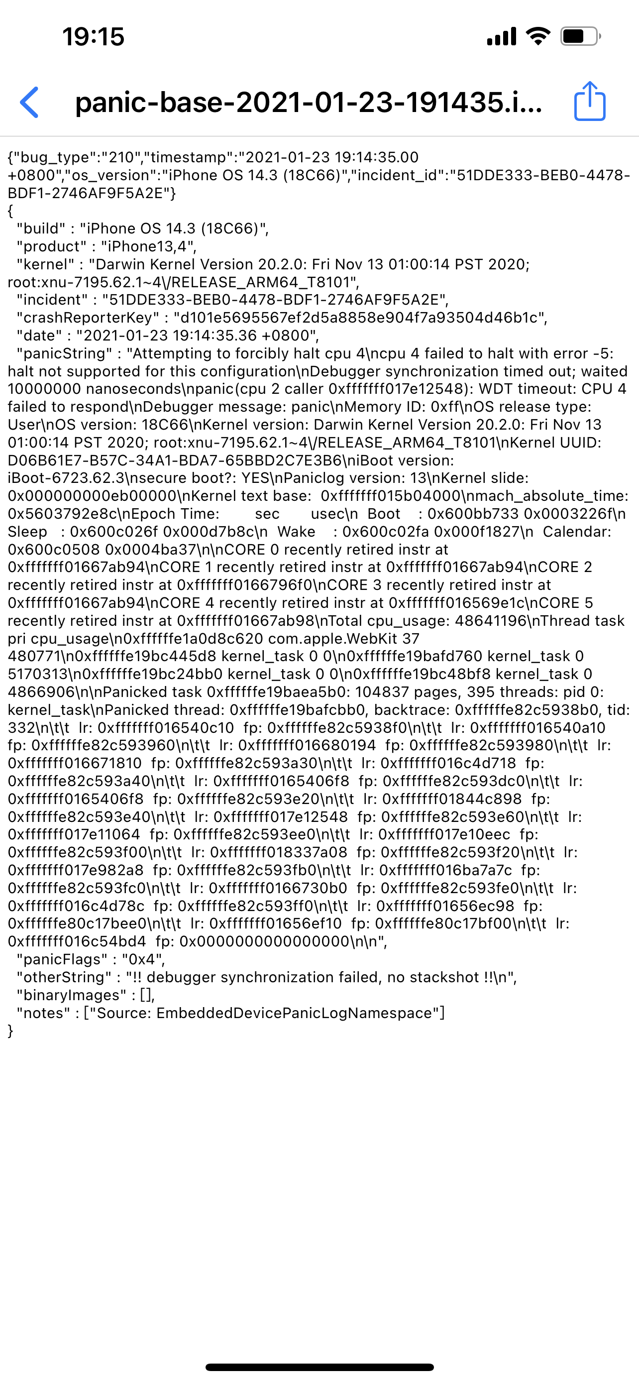 从2021年1月14号开始,手机会突然自动重启,表现为页面突然卡住不动,然后手机自动黑屏重启