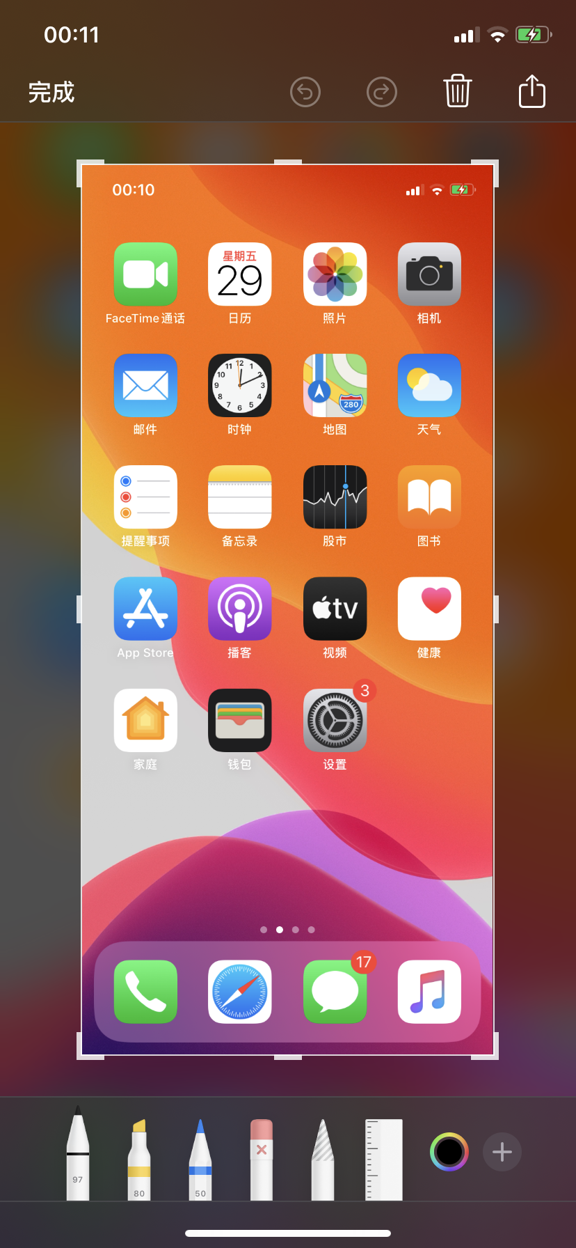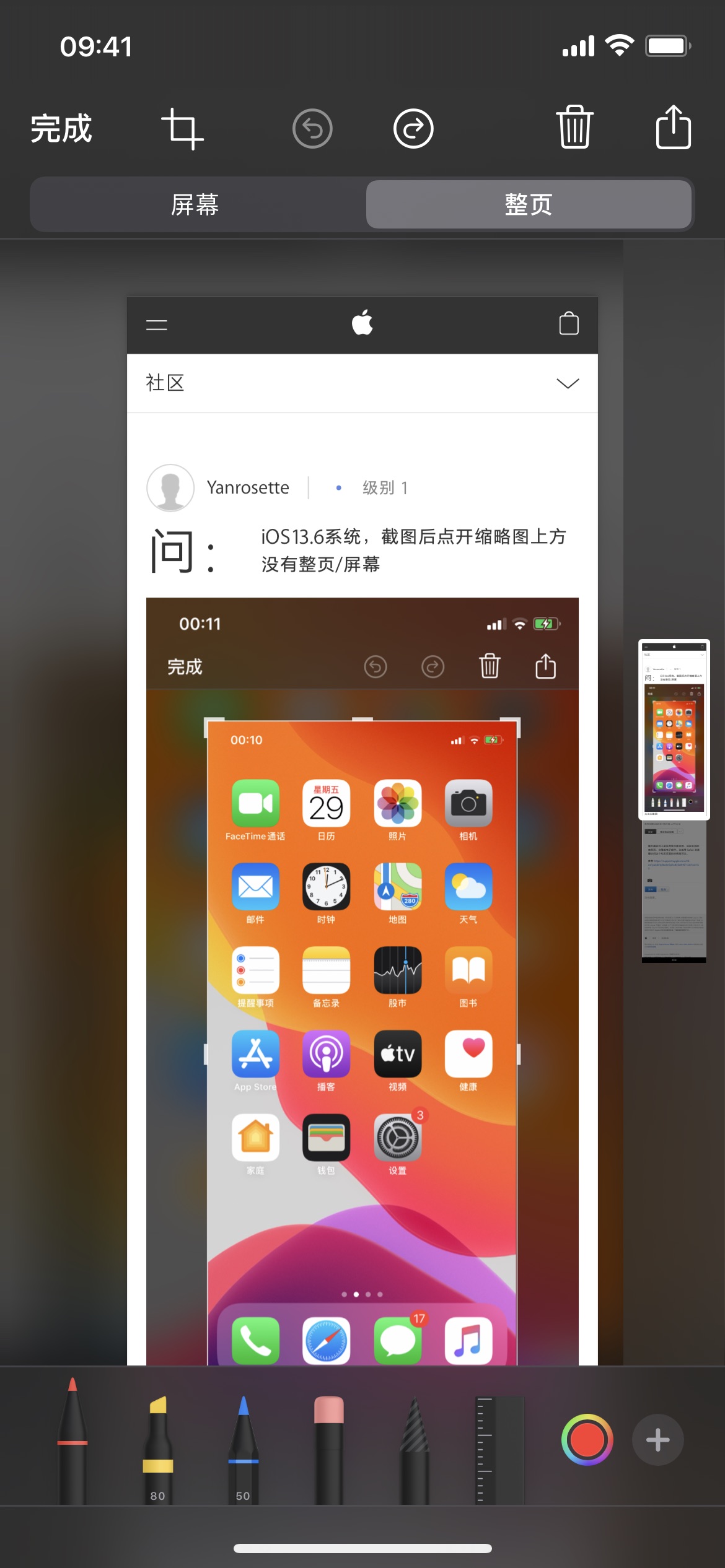 iOS13.6系统,截图后点开缩略图上方没有整页/屏幕