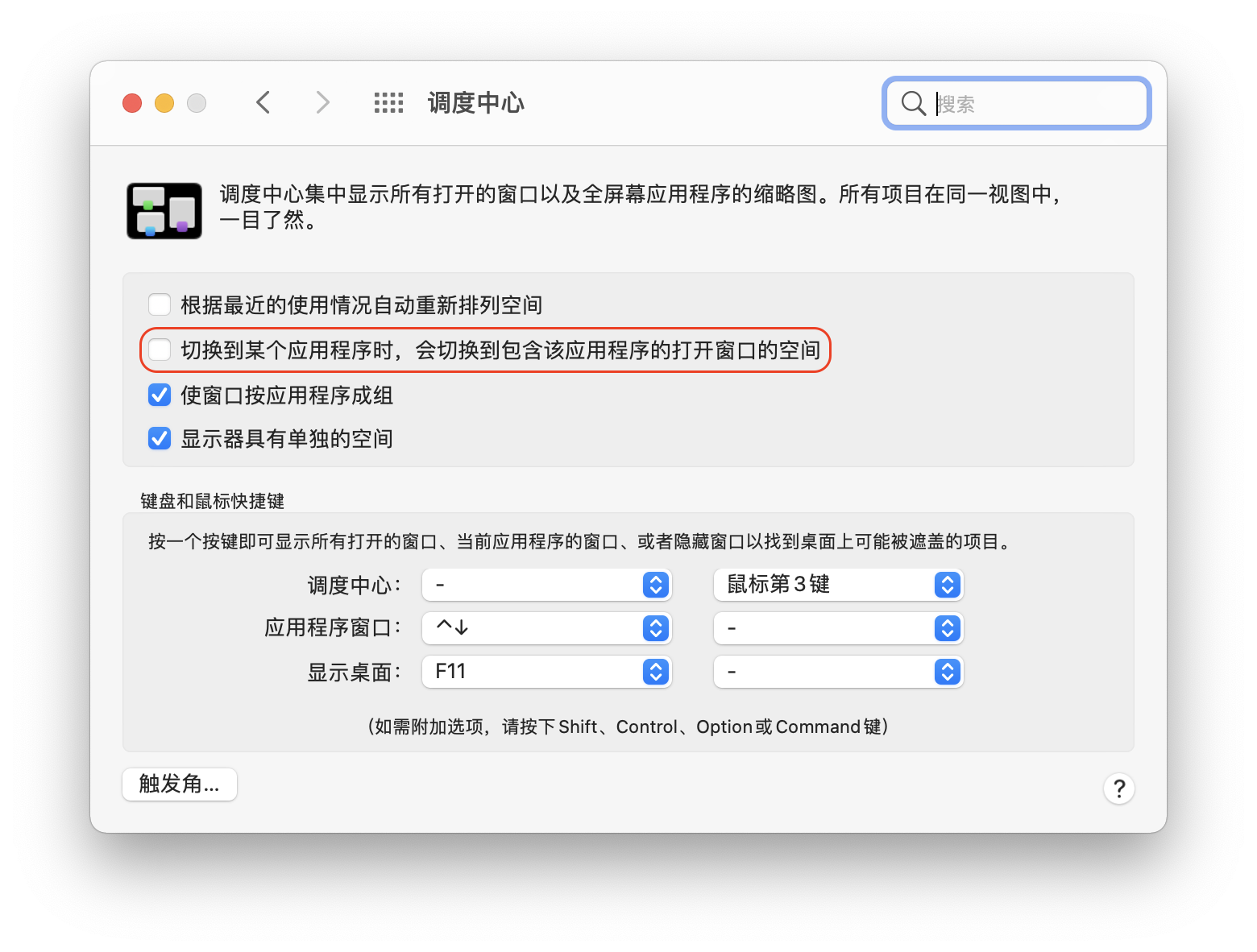 参考:在 Mac 上更改“调度中心”偏好设置 - Apple 支持
