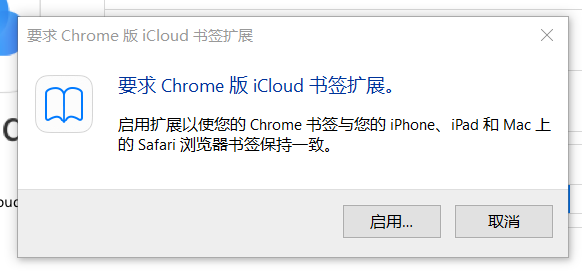 在Windows上装了iCloud和Chrome,Chrome上装了iCloud插件,但打开iCloud里的书签同步时,仍然提示“启用Chrome插件”。可是我的Chrome上的iCloud插件明明是安装好了并且启用了的。试过重启计算机、重装iCloud和重装Chrome上的iCloud插件都没用。