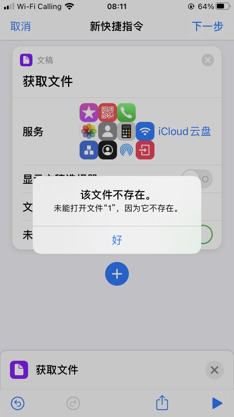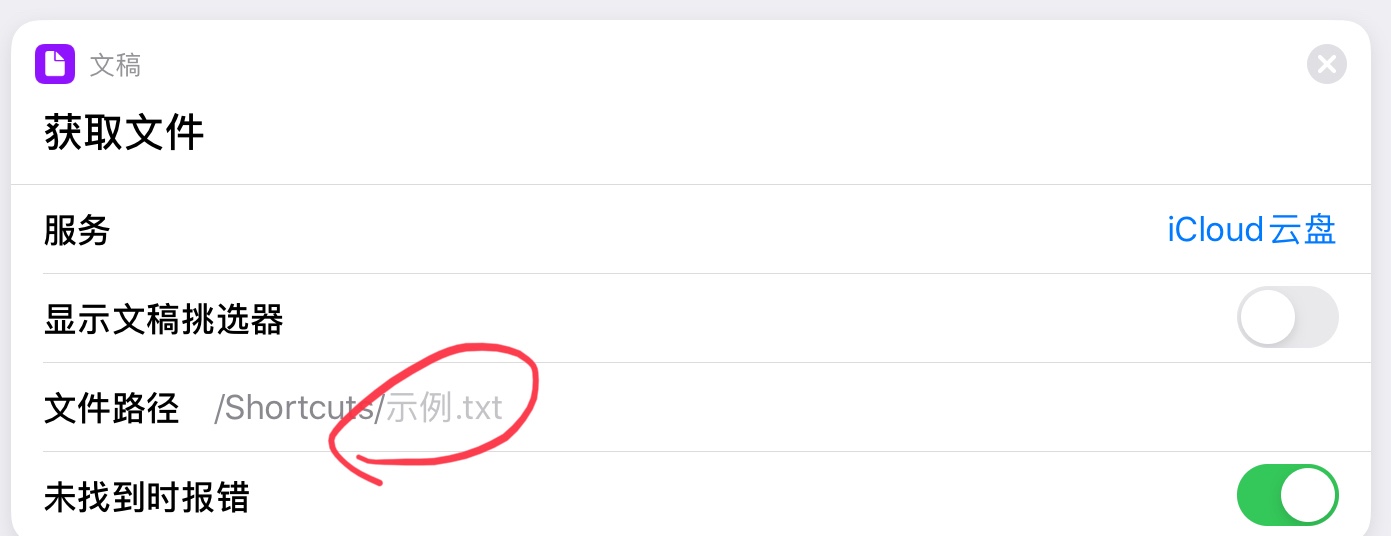 关于「快捷指令中“文稿”栏内“获取文件”的使用方法」以及解决方法