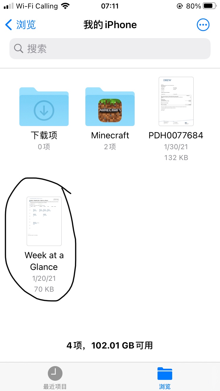 我想要让这个被圈起来的文件被快捷指令调用,而它被我放在了我的iPhone里, 现在我需要把它放到一个特定的地方他才能被快捷指令调用