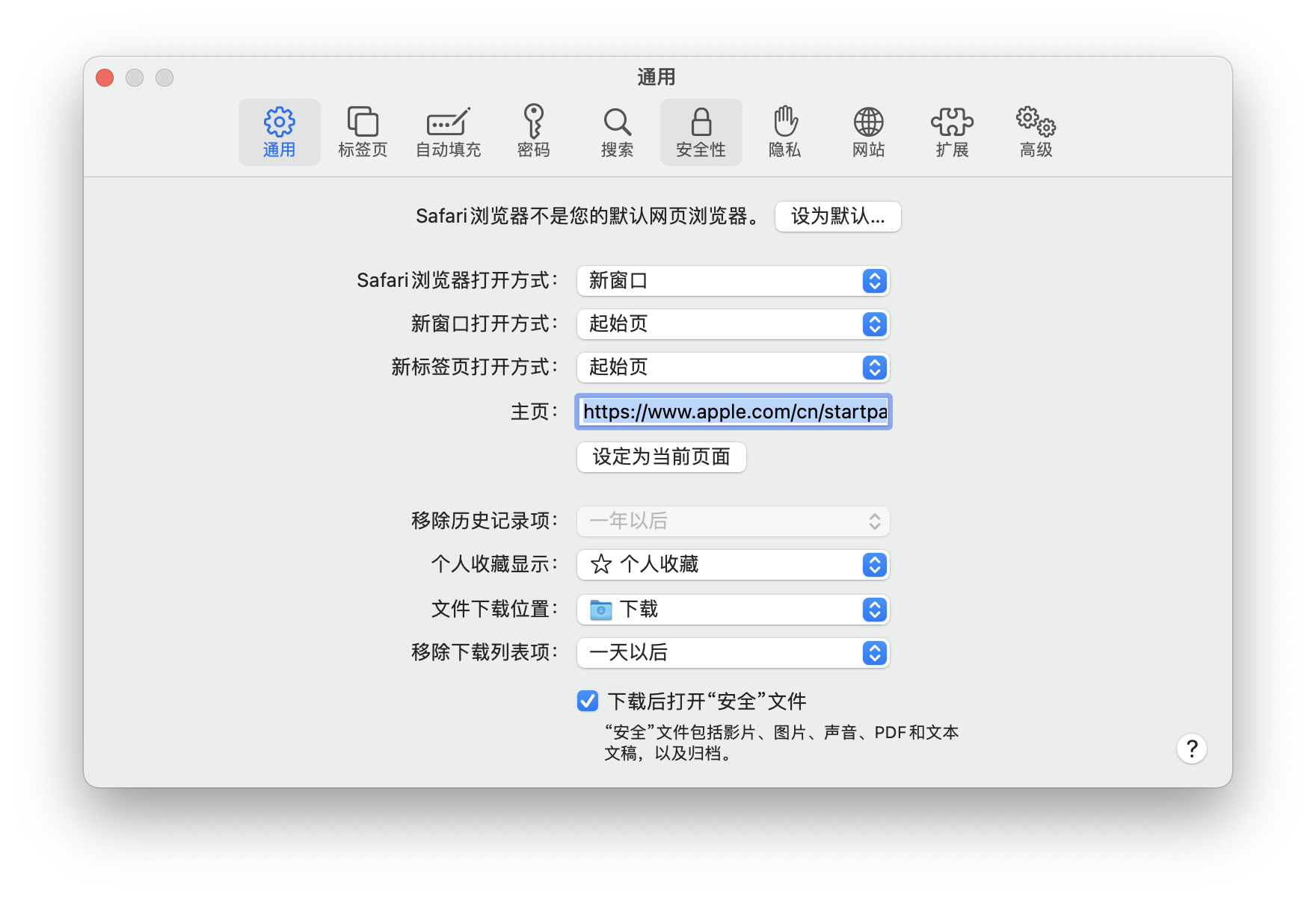 此外,Safari偏好设置中的定期清理历史记录功能也不能使用。