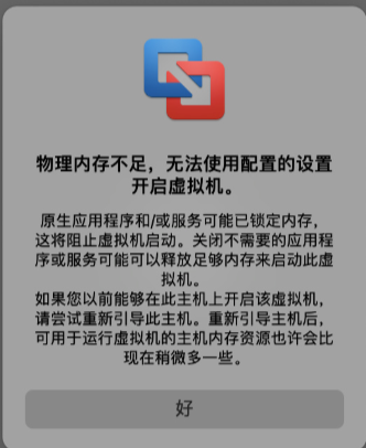 升级系统为macOS Big Sur之后,我的VMware Fusion用不了了。启动Windows虚拟机,报物理内存不足。
