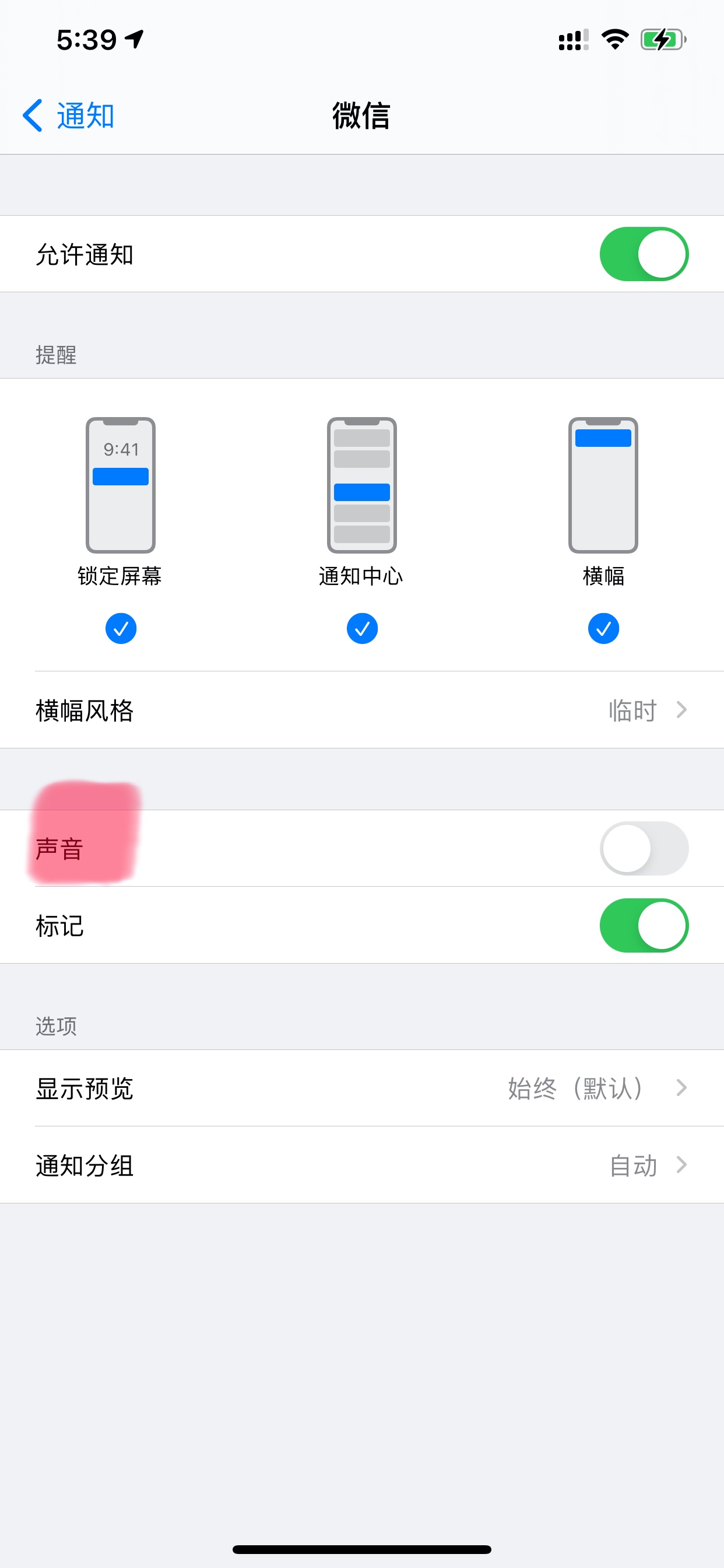 最早如图设置时,只有通知提醒屏幕亮一下,挺好。最近会有声音就很烦。已尝试重启和卸载,无果。。