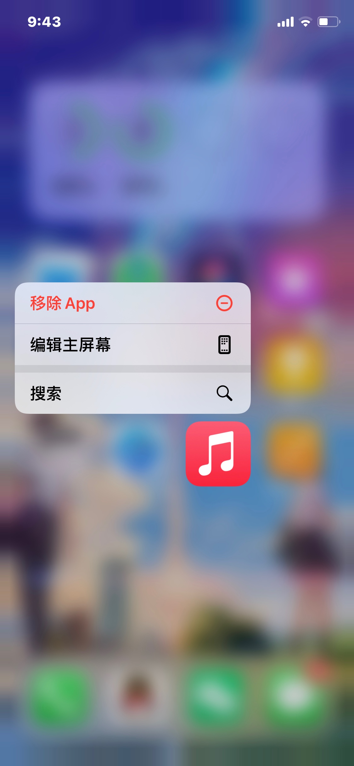 iOS 14.4无法卸载软件,长按后点击只有“移除App”和“编辑主屏幕”,点击“移除主屏幕”却只能移除到资源库;在设置——通用——iPhone储存空间中点击软件下面也没有卸载软件按钮。
