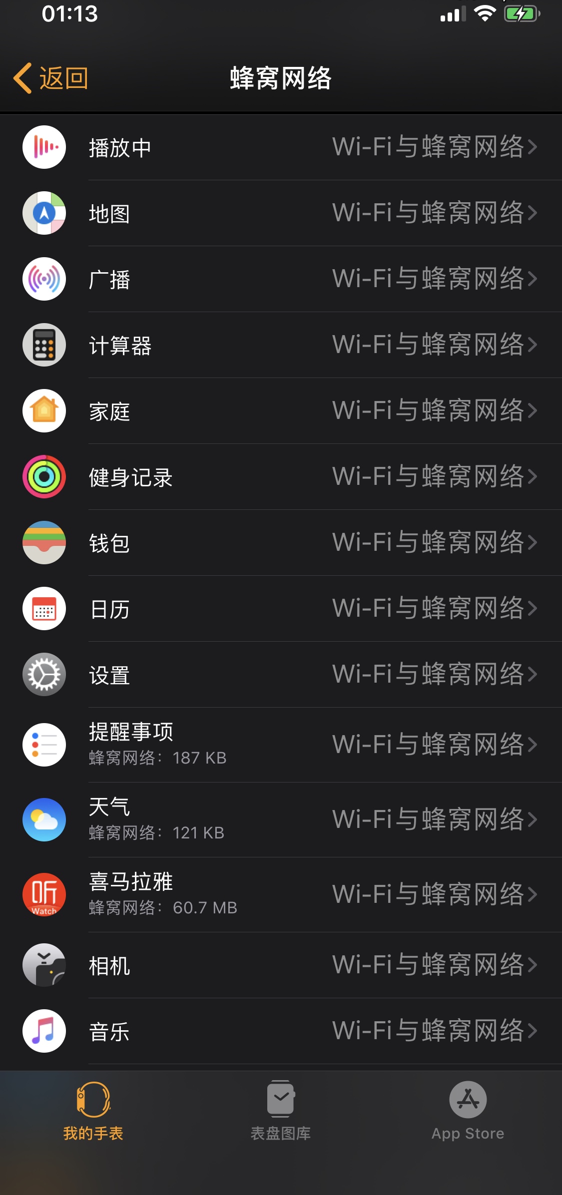 watch上蜂窝数据里,和iPhone上的蜂窝数据里,“音乐”都是打开WiFi的。
