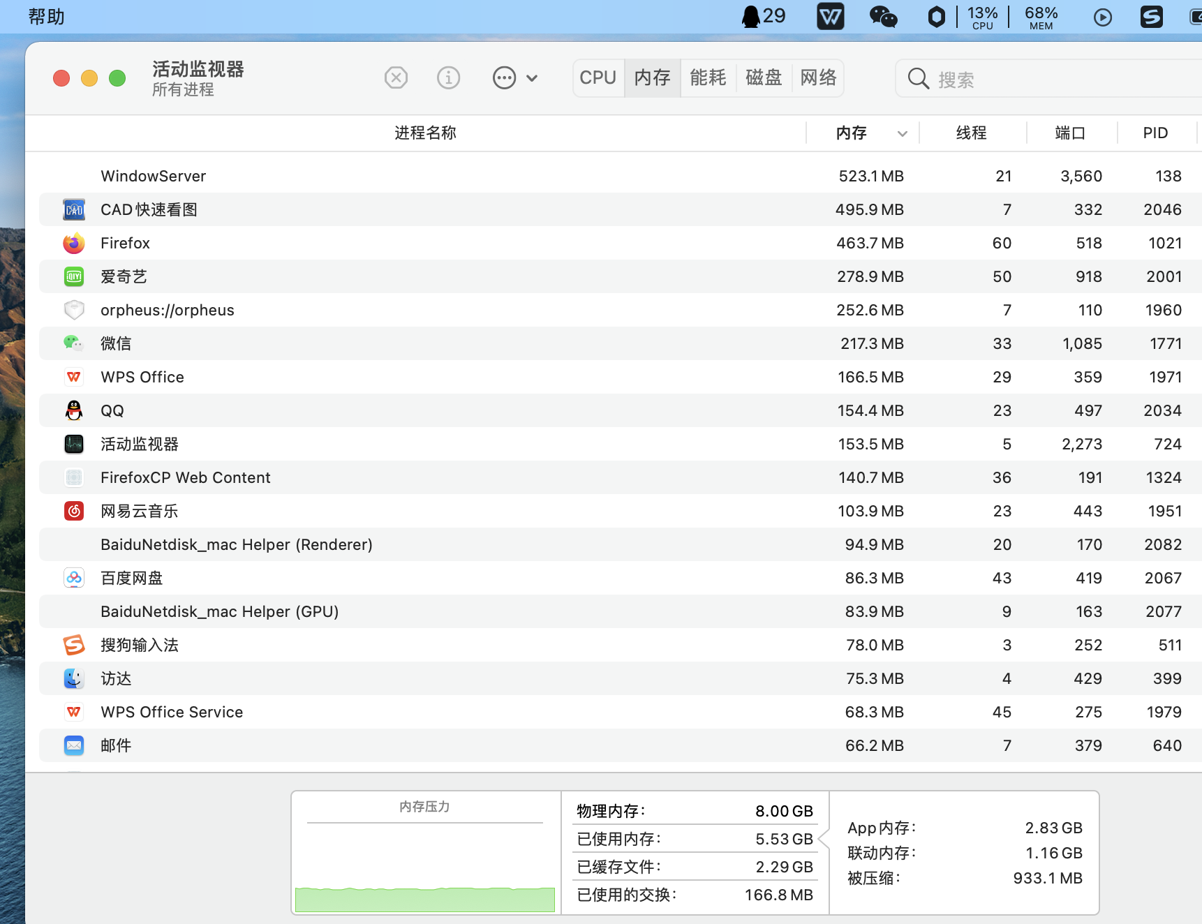 去活動監視器看, 大概率最占內存的就是檸檬.