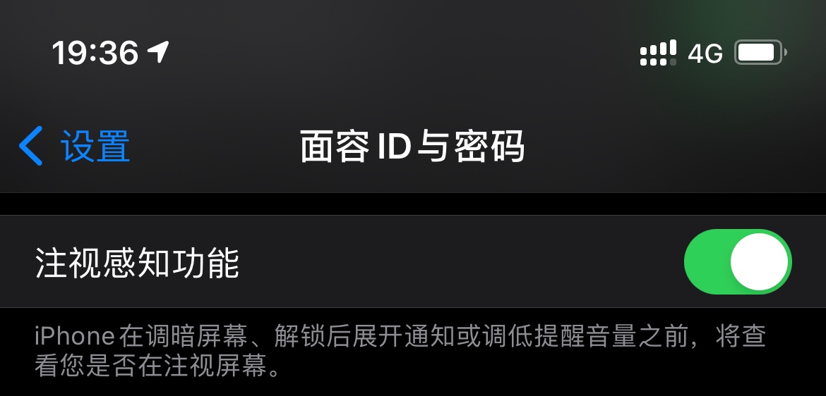 看上去像是因为“设置”>“面容 ID 与密码”>“注视感知功能”。