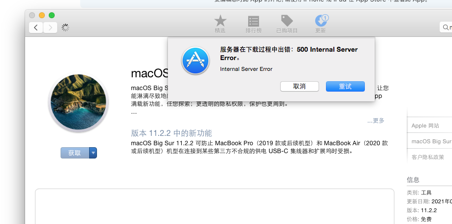 需要先将Yosemite更新到中间版本,再更新到Big Sur才行。