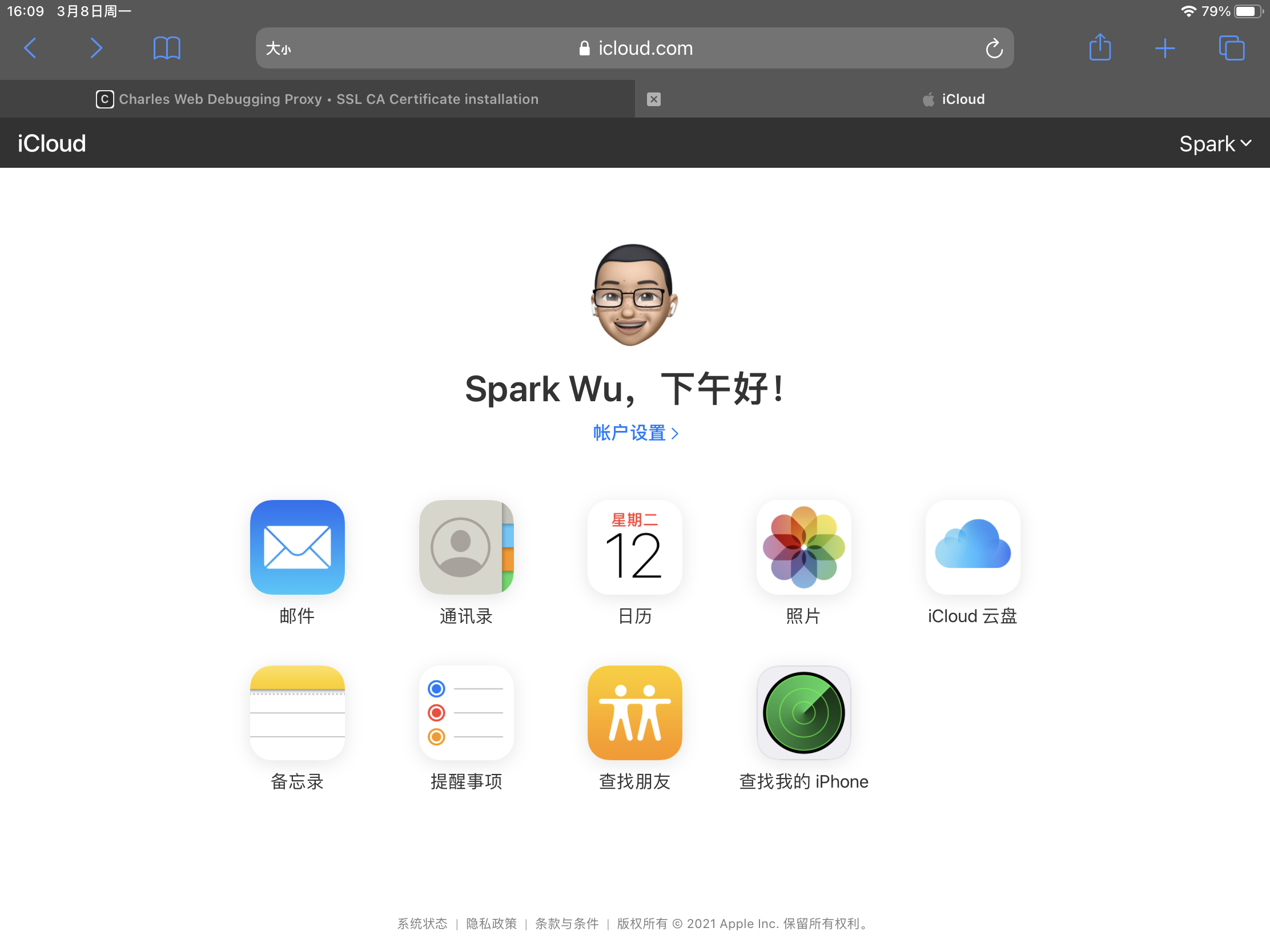 在电脑或 iPad 浏览器上访问 https://www.icloud.com/,并使用你的 Apple ID 登陆,