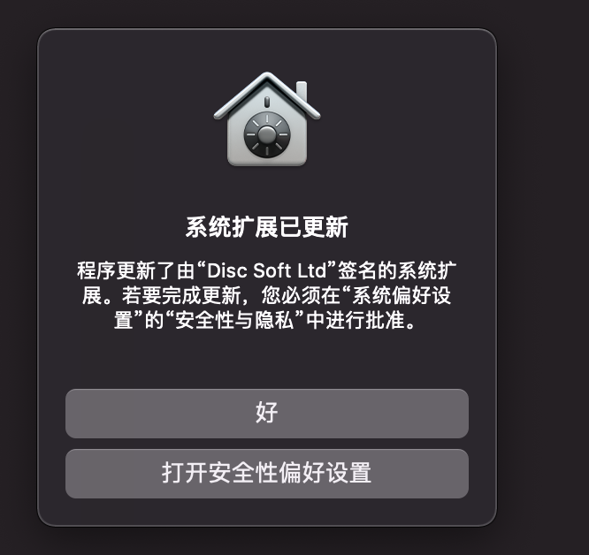 系统扩展已更新 “Disc Soft Ltd”签名的系统扩展,开机都提醒这个