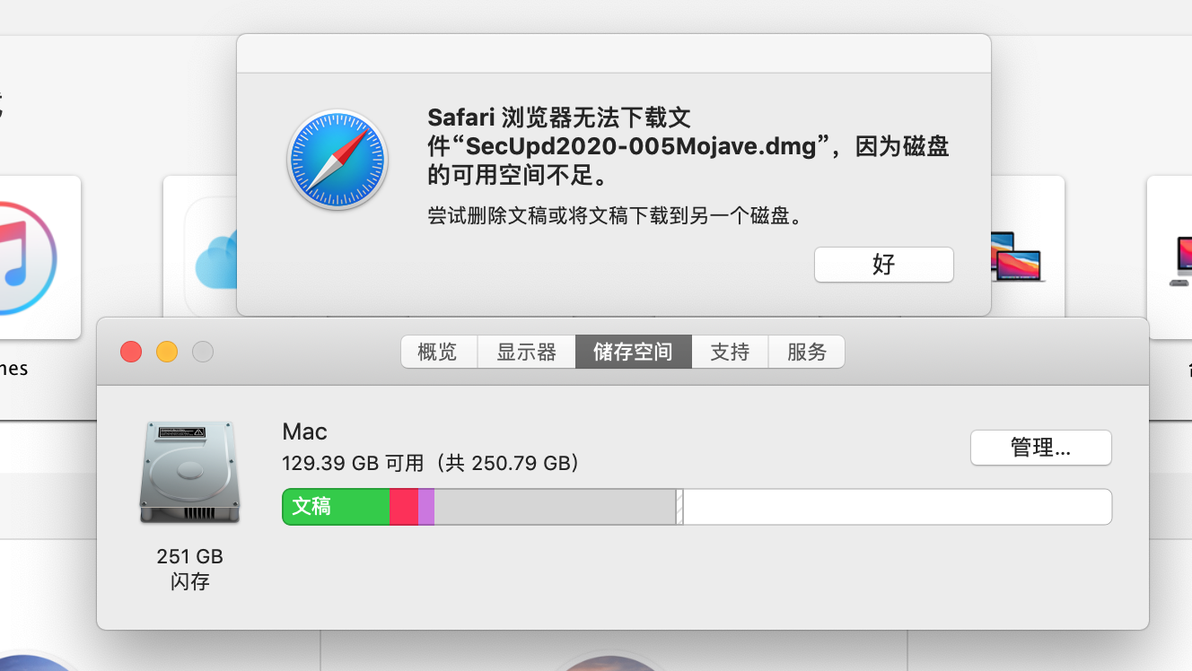 为什么用Safari下载文件提示磁盘的可用空间不足?