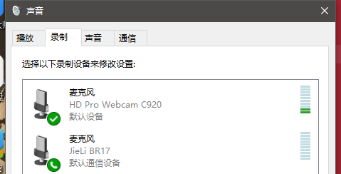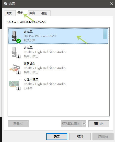 图中我还安装了 罗技摄像头,在测试的时候,罗技摄像头内置麦克风是可以正常收录声音的.