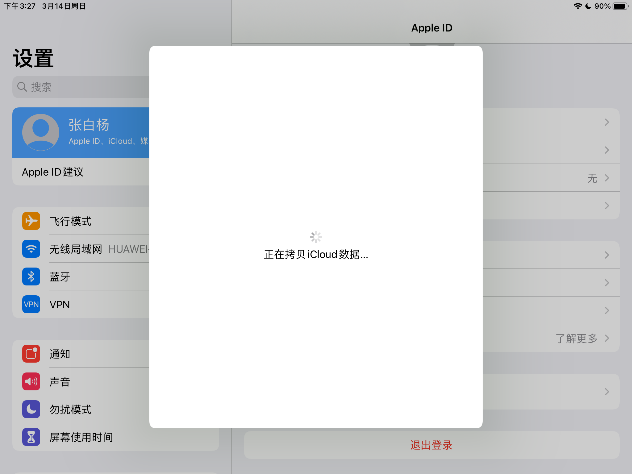 Apple ID无法登出,始终卡在拷贝iCloud的部分