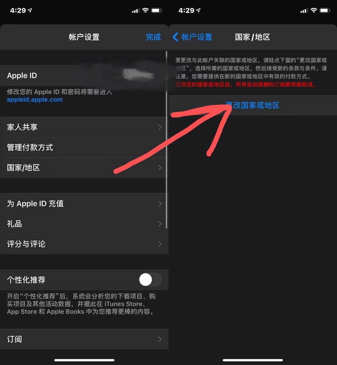 为什么APp账户设置不能正常使用,不能更改国家和地区