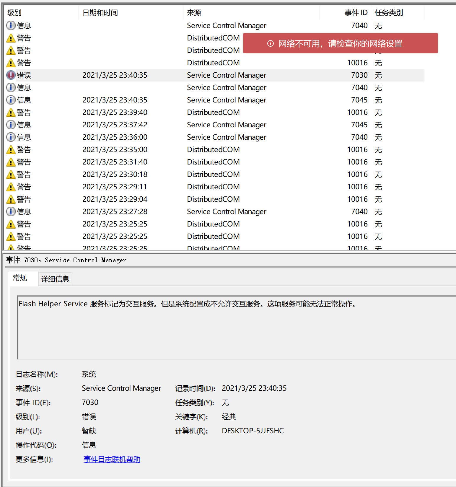 我这边也发现 DistributedCOM 组件服务在windows10 系统上,会因为授权的问题,导致频繁崩溃和重启.