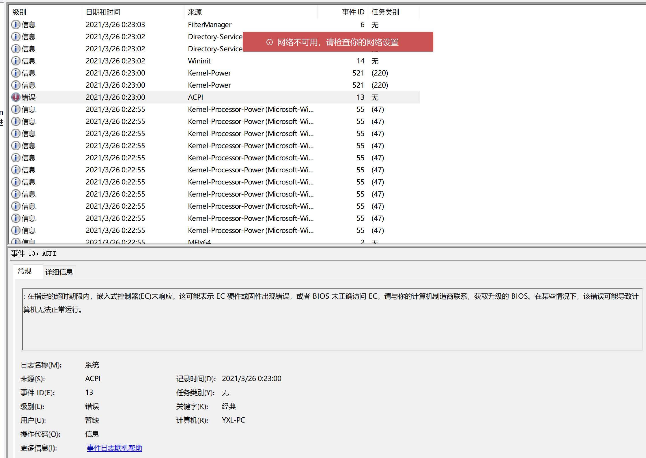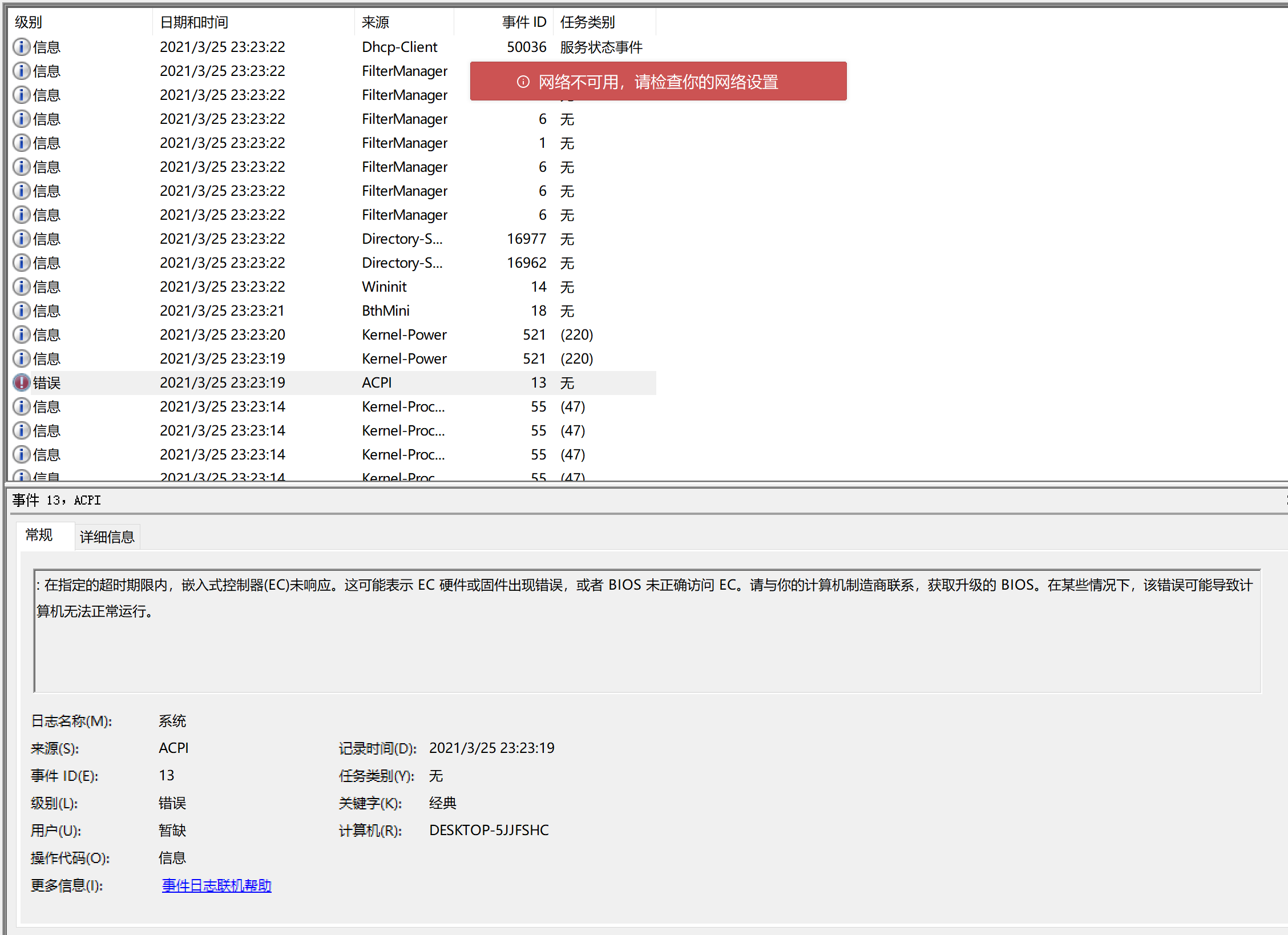 热心的网友你好:联系过苹果支持也是建议重新装系统,所以就干脆重新装了,现在看来问题依旧!昨天晚上经过重装系统使用正常后晚上关盖睡眠早上开盖唤醒,问题再次出现!第一时间看wlan那个服务是打开状态,系统依然不识别网卡硬件,查看了管理员状态和系统服务报错信息 截图如下:帮忙分析下,苹果支持这边我也会再次联系