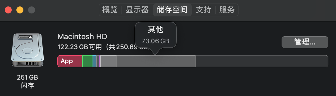 内存总共两百多G,“其他”就占了七十多G,如何清理