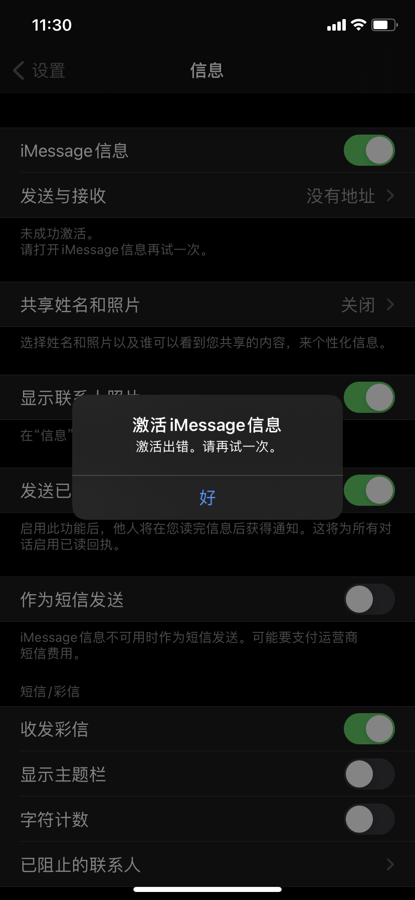 激活 iMessage 信息和 FaceTime 通话最多可能需要 24 小时。如果 24 小时后问题仍然存在,请按照以下步骤操作: