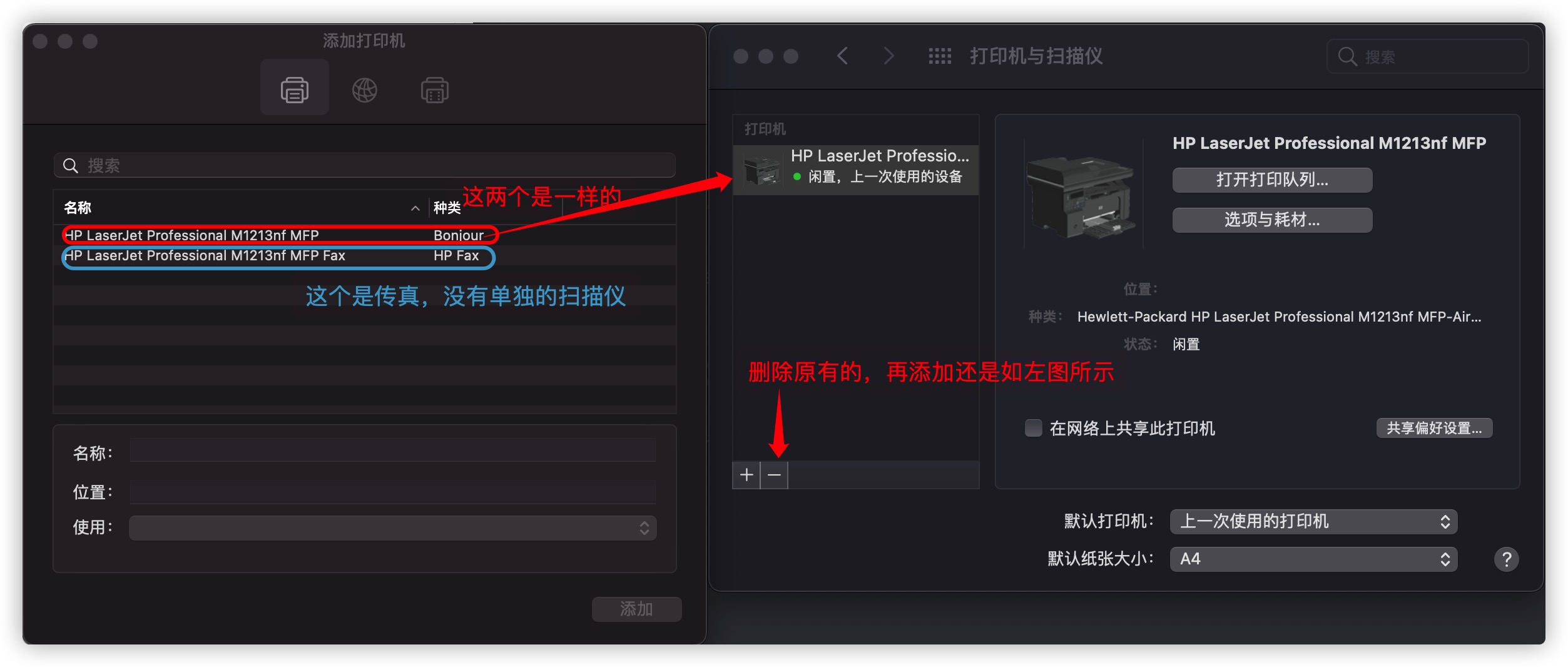 您尝试在打印机管理中,添加HP LaserJet Professional M1213nf MFP 作为扫描仪试试看
