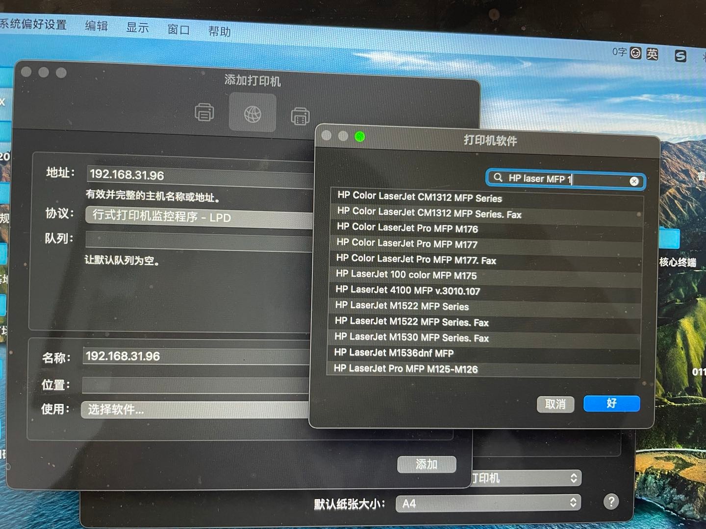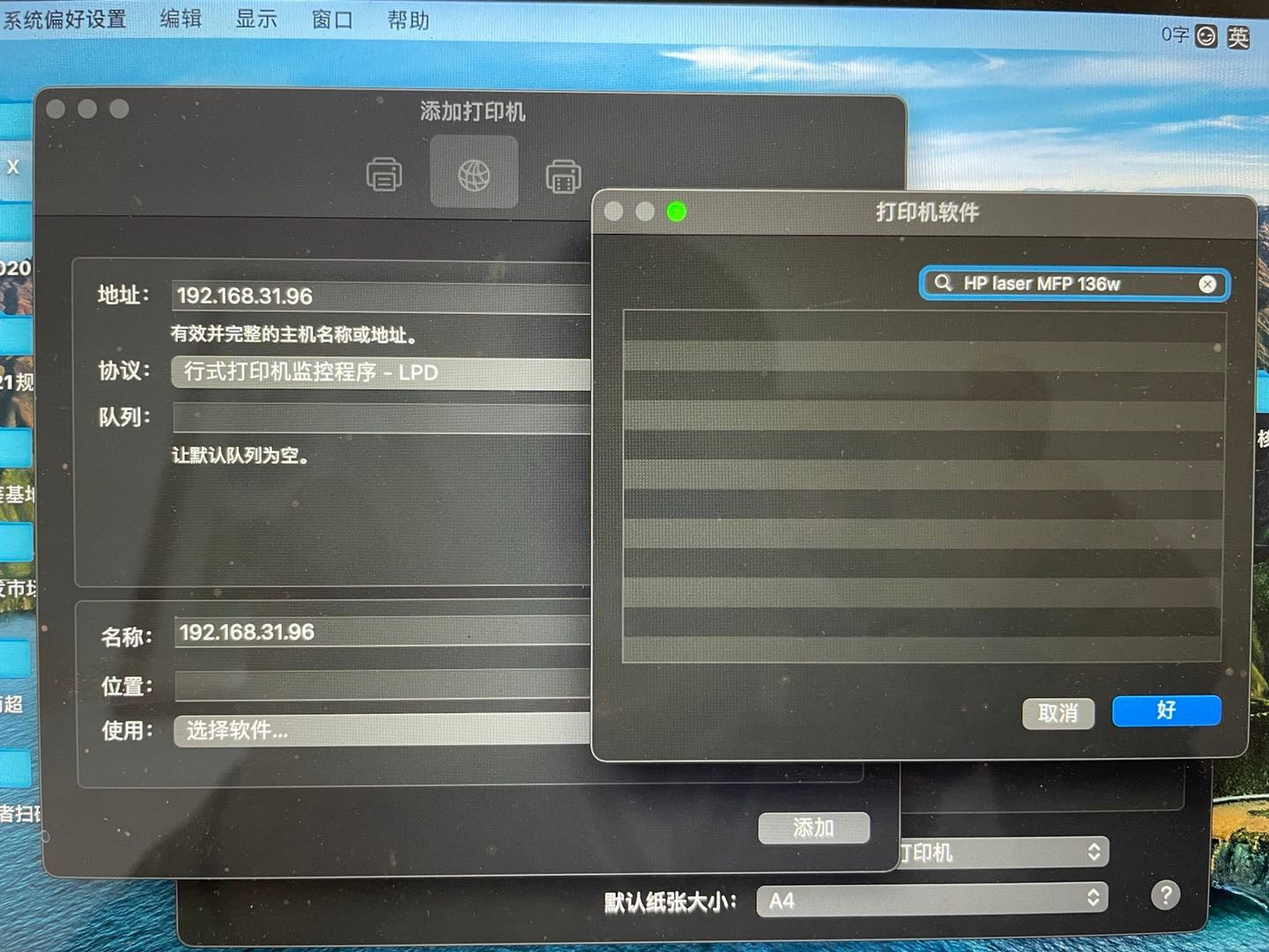 本人电脑系统最近刚升级,目前版本是mac OS big sur 11.2.3,使用的打印机为HP laser MFP 136w,电脑系统升级之前一直是可以正常打印的,但现在无法打印了,在惠普客服的指导下重新添加了打印机,然而目前的情况是电脑点击打印之后,打印机不受控制的打乱码文件,完全停不下来,用过HP smart ,添加打印机的结果是无法查找到打印机