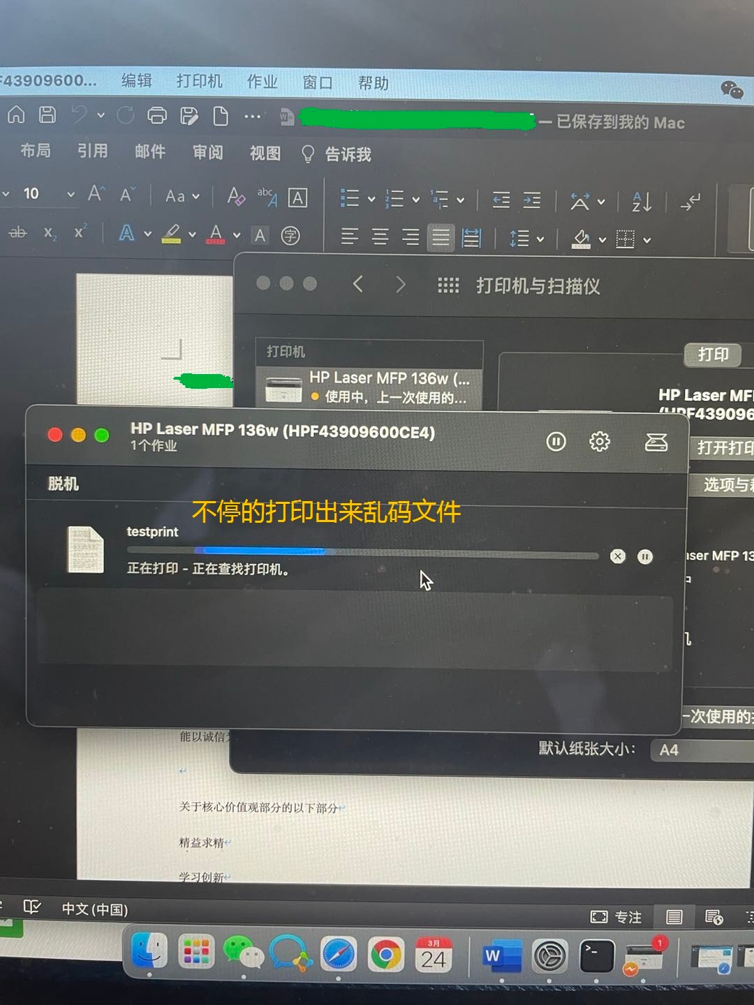 mac OS big sur 11.2.3打印出现乱码,打印机停不下来了