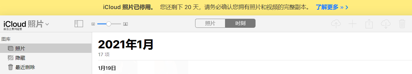 已经停用了icloud 功能,但是登陆进去选择图片,删除按钮是灰色的,要么选择删除后一直显示正在处理