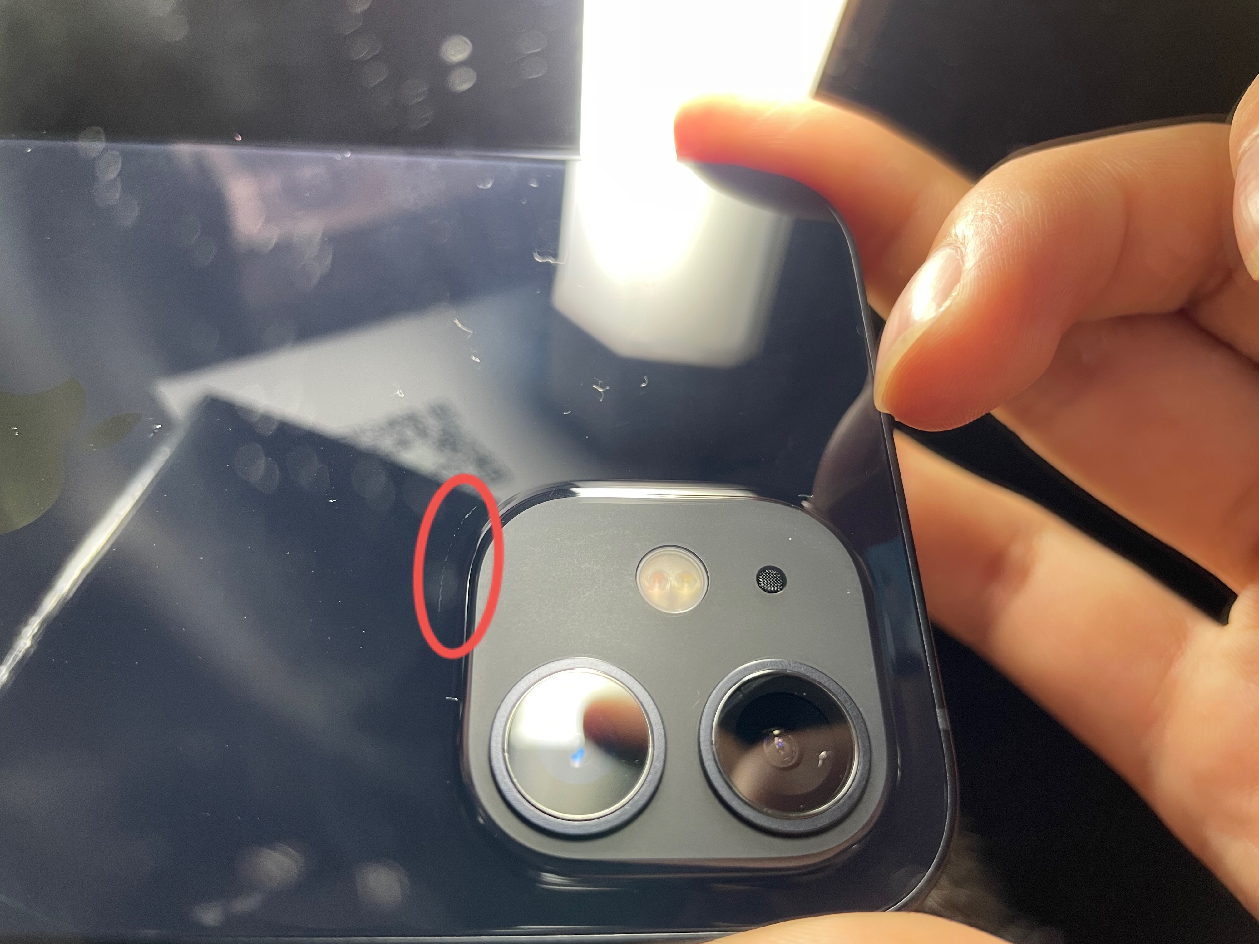 就是整个摄像头模块的周围,弧度的那里,有一圈手机壳挤压后留下的印,怎么擦都擦不掉,用指甲划过那里会有明显的感觉,不是划痕那种感觉,更像是沾了东西在上面,手机买来只用了半个月,擦也擦不掉扣也扣不掉,不知道怎么弄,强迫症看着特别不舒服,应该是那种硅胶手机壳的印,不知道怎么能处理掉,求帮忙解决。