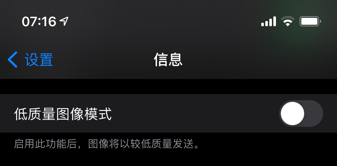 问题被标记为 排名最靠前的回复 以下用户的用户个人资料: SparkWu SparkWu 用户级别: 级别 7 28,336 积分 2021年3月25日 下午4:18 回应 jaugakei 有可能是对方打开了“设置”>“信息”>“低质量图像模式” 回复 链接