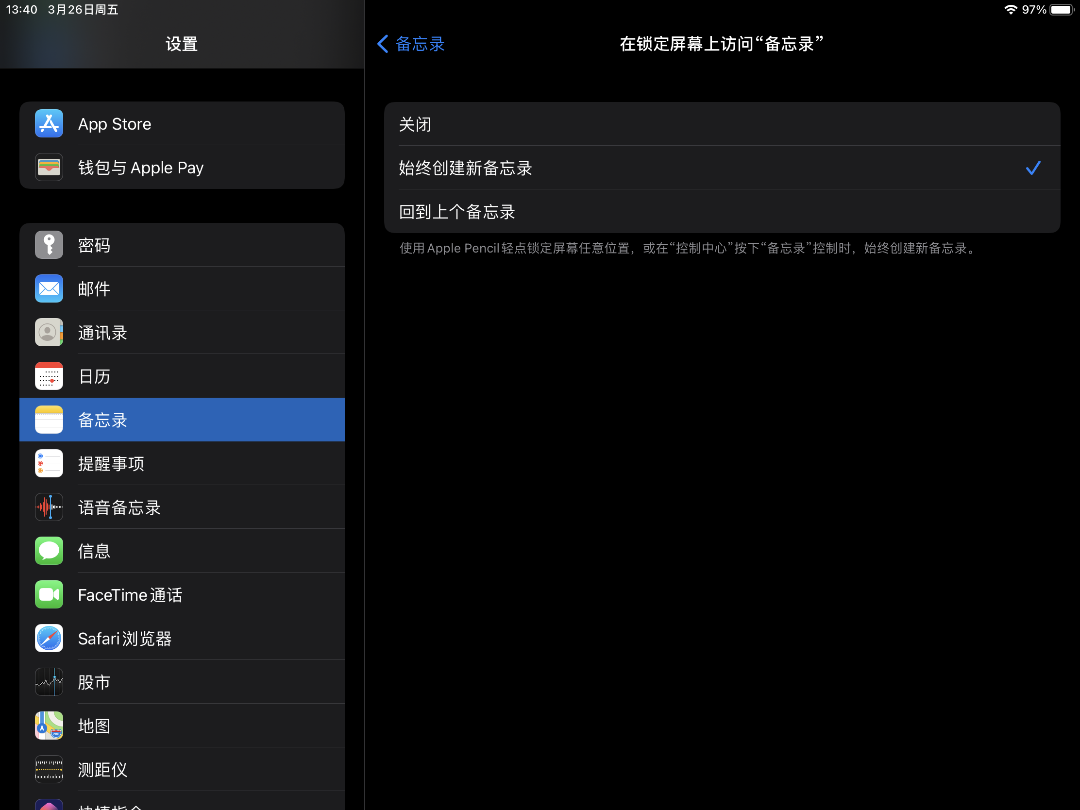 在通知栏对通知进行右滑然后使用Apple pencil点击删除时,通知不会被删除而是会进入备忘录。