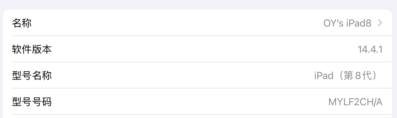 您好,在我使用iPad 8时,我使用的设备信息如下