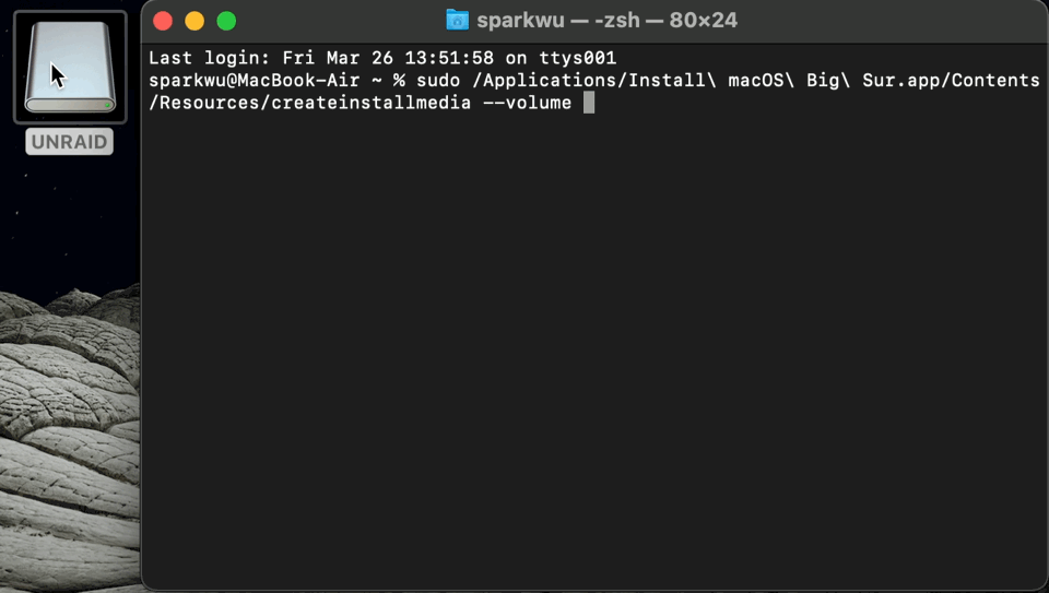 制作系统盘时,到了终端输入命令就提示/Volumes/MyVolume is not a valid volume mount point