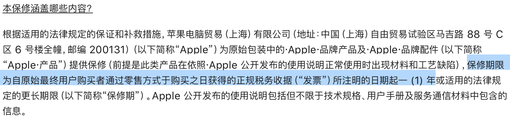 而购于第三方经销商处的Apple产品,Apple无法准确追踪具体的购买日期或开具发票的日期,故一般就以开机激活的时间来开始计算保修期。