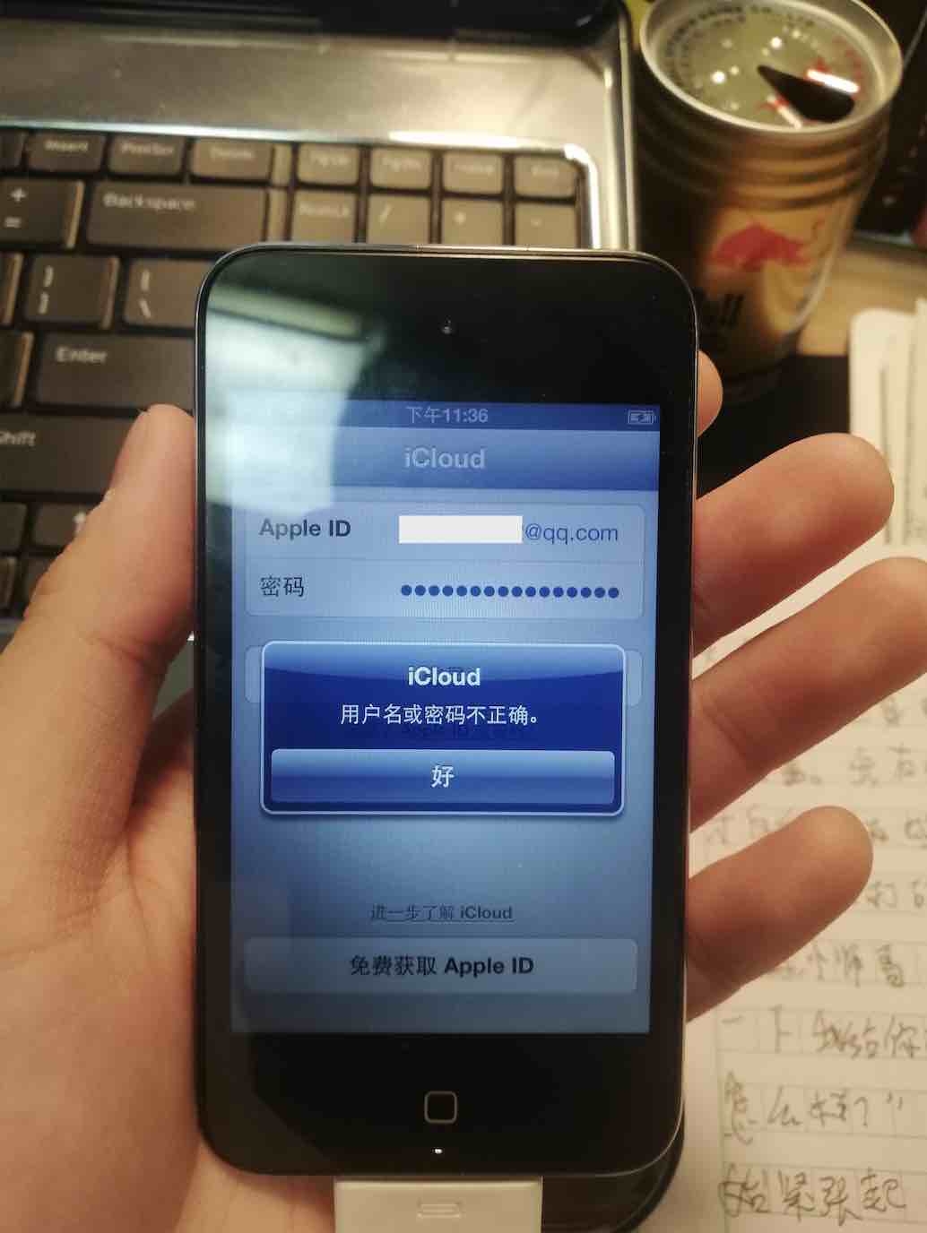 我在想用iPod touch4登录iCloud以听歌,可是我输入了正确的Apple ID和密码,以及在密码后面键入其他设备上的验证码,它显示说密码不正确