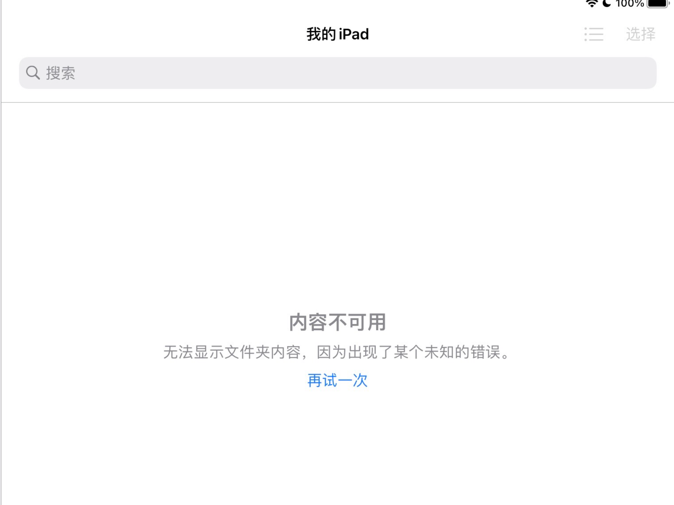 iPad 文件app出现 内容不可用