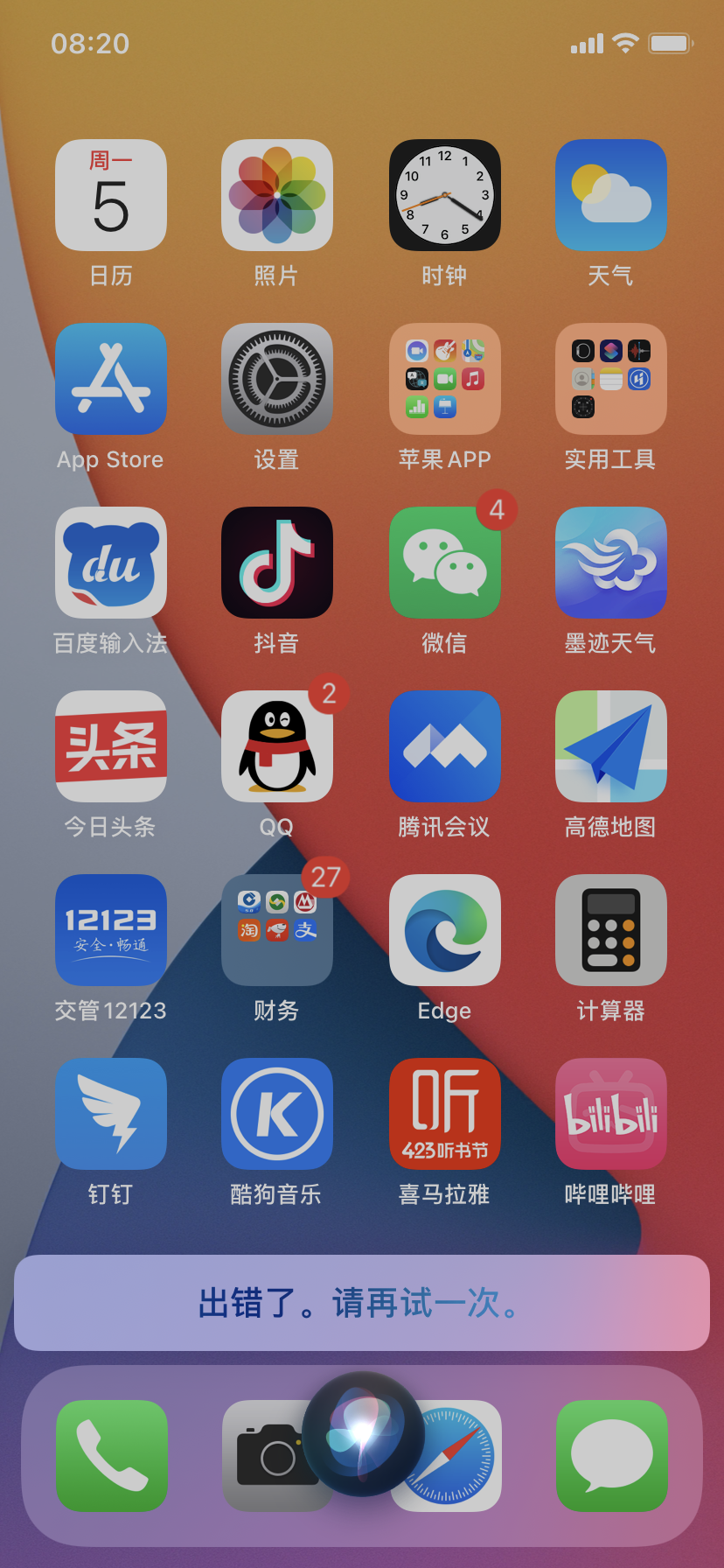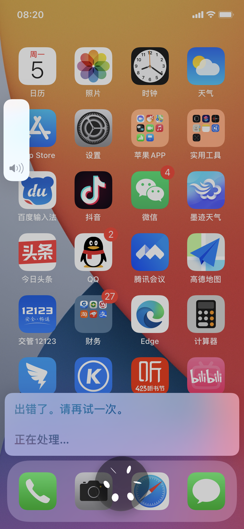唤醒siri一直在提示正在处理,然后就是出错了再试一次,这是咋回事