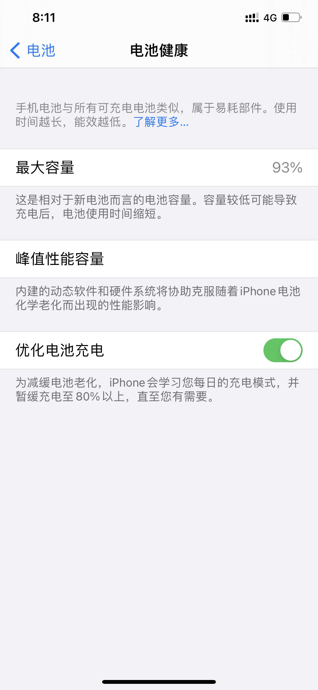 不过手机毕竟是拿来用的,而所有的可充电电池都是属于消耗品,锂电池也不例外,寿命有限,最终都需要更换。您可以持续关注电池最大容量的情况,如果后续已经低于 80%,或者明显感觉到电池不耐用,在保修期内,可以联系苹果官方申请免费更换电池。